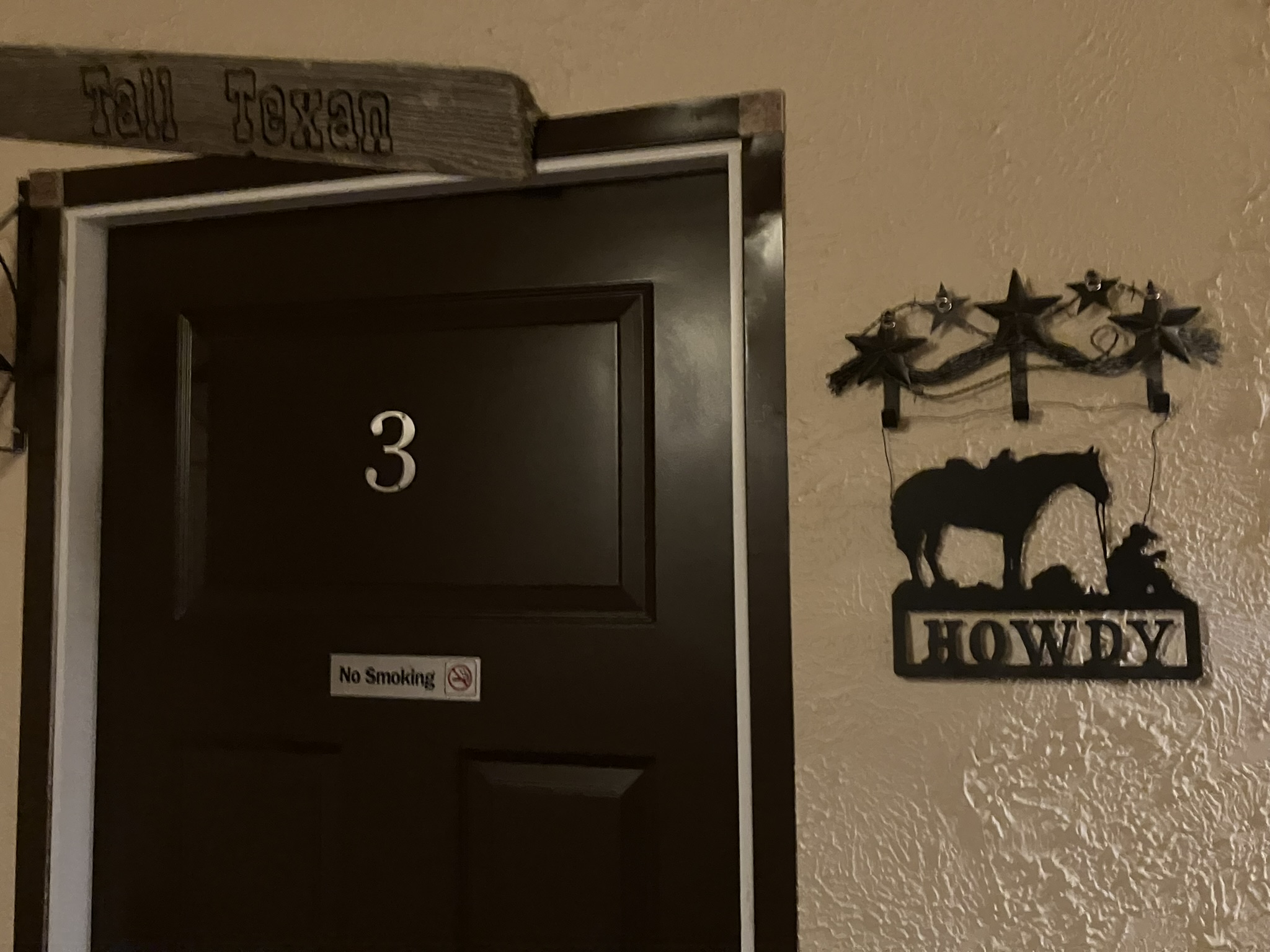 Kathy, the manager, was something else. Very friendly, and very Texan, she proceeded to talk to me for 35-45 minutes straight, telling me about her failed and abusive marriage, the deaths of her children from overdoses and suicide, raising her five now young adult grandkids, the hauntings and ghosts of dead women and three children in the hotel (that’s always a selling point for a hotel), her diabetes and leukemia, which she does not believe she has despite being diagnosed, spiritual encounters with others, and her plans to walk as far as she can for God, with no other plans, starting sometime in September. I told her I’m on a drive for Bev (which, of course, is true), and she wondered if God had brought me to the hotel to meet her, as is has been the case for many others.