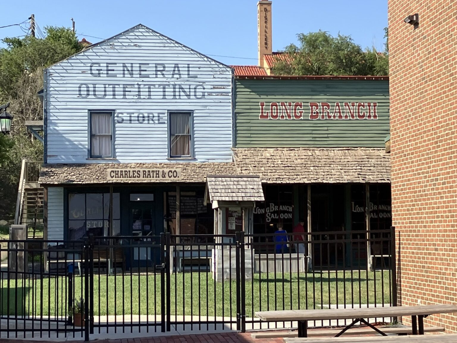 Dodge, and Kansas in general, really was the dead center, so to speak, of the cattle business, and still is, with cattle auctions here weekly. The cattle yards here, where cattle are “processed” (and not for their green cards) are vast, with as many as 45,000 head of cattle. In those yards, which are massive and go way back into the distance, what look like dots in the distance are actually cattle, waiting to get to the “right” weight before being slaughtered and processed.