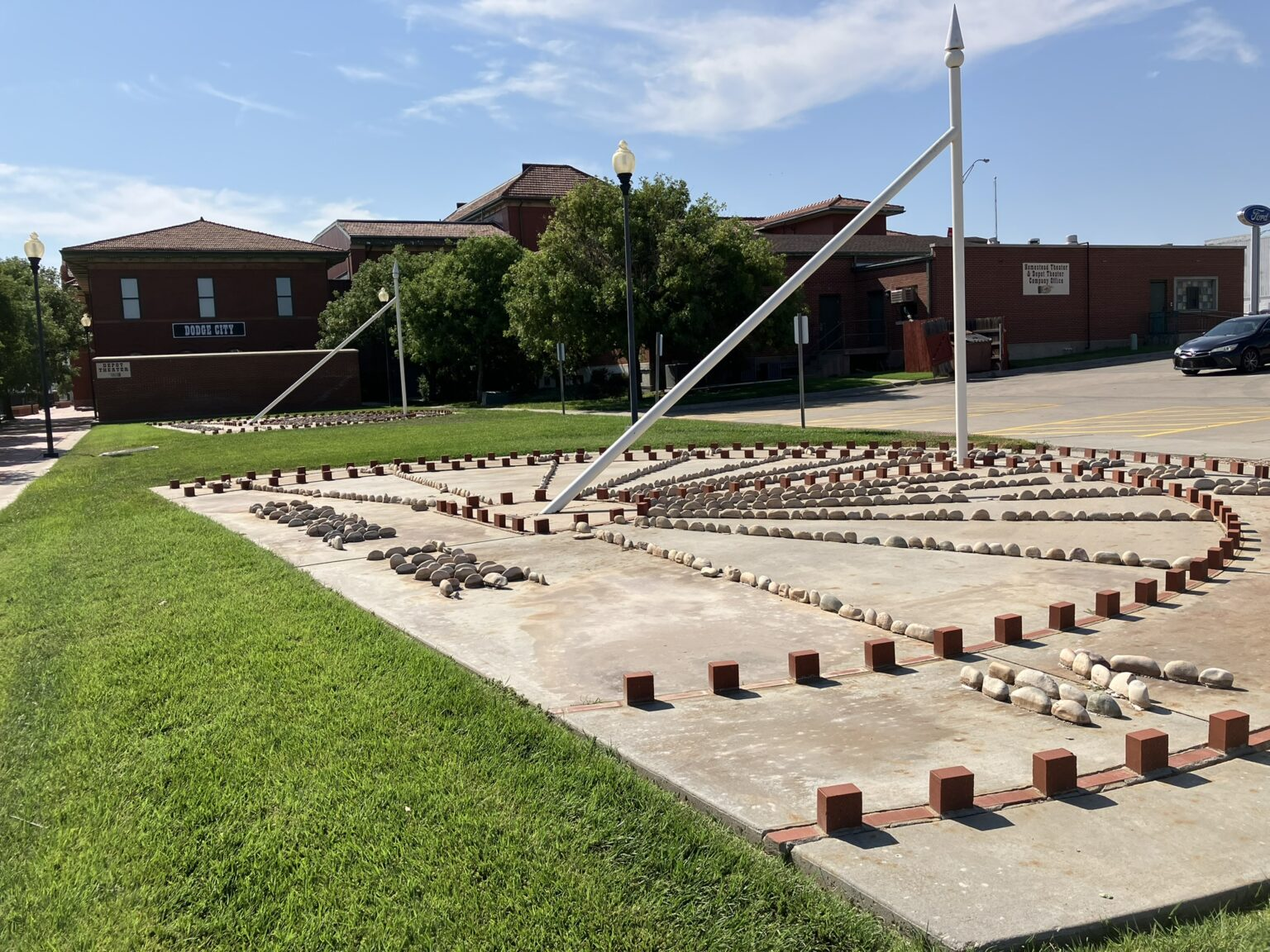 In front of the railroad depot are two giant sun dials. One is set for Mountain time, and the other for Central, and the dividing line between the two time zones goes right through the middle of the two dials.