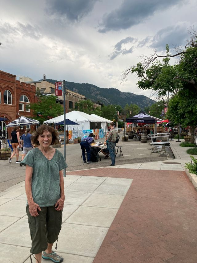 Today we hoped to visit Shikha and Indrina before heading up to Boulder, but Shikha was sleeping and so we went directly to Boulder instead. I’ve been here several times, but Bev and I were here in 2021, and she and I both loved the town. I have some lovely photos of Bev here, and they made my heart glad to see them just before I wrote today’s blog.