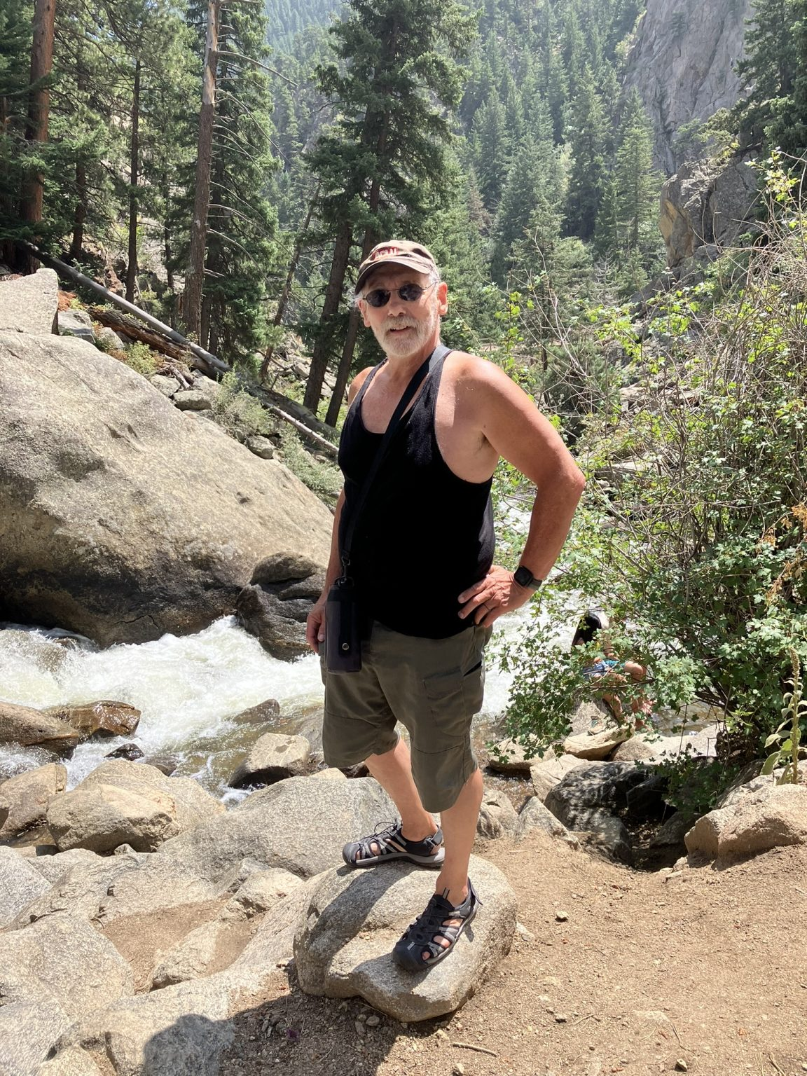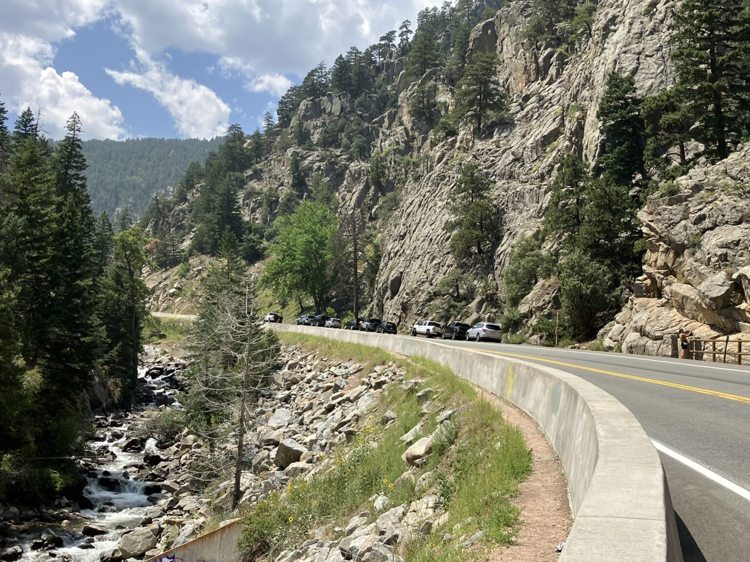 After walking and driving around a little, including driving through the historic district, with wonderful homes, we headed west, about 9 miles outside of town, to Boulder Falls, which Bev and I visited and really enjoyed. Kaye and I released some of Bev’s ashes here, by Boulder Creek, and I followed my ritual of talking to Bev and letting her know how much I love her and why I picked this spot. It’s by now a comfortable ritual for me, and adds a little meaning.