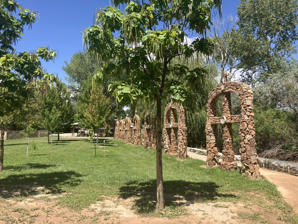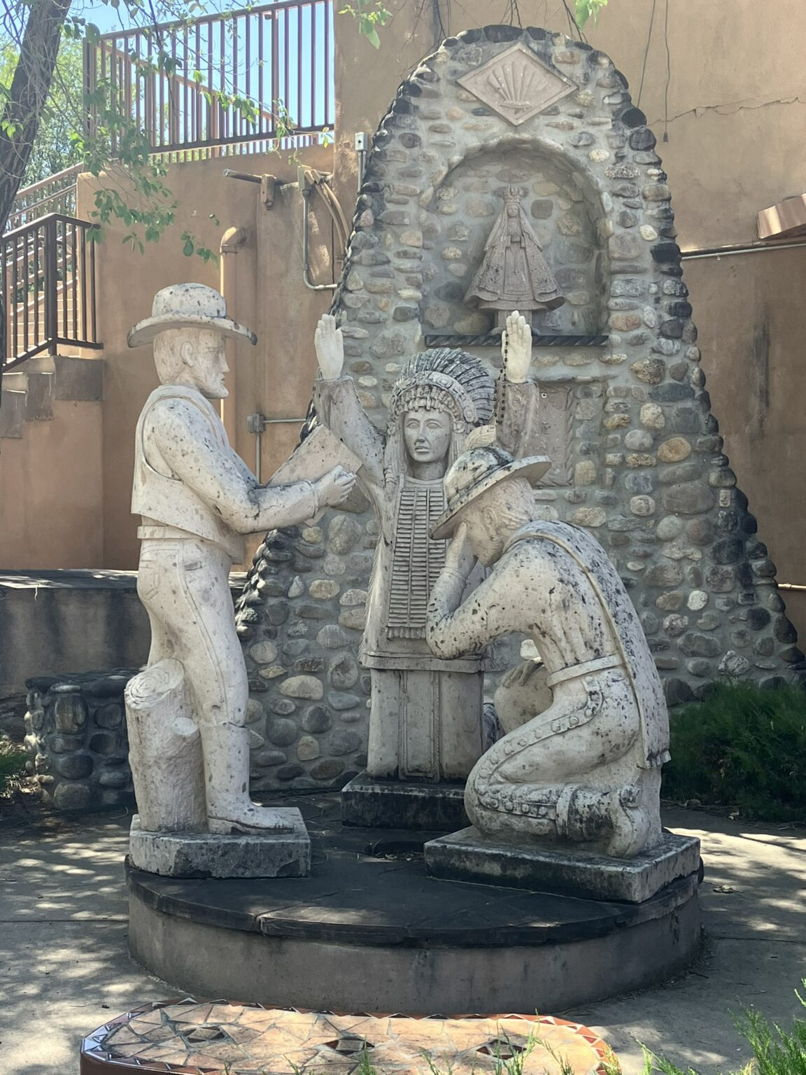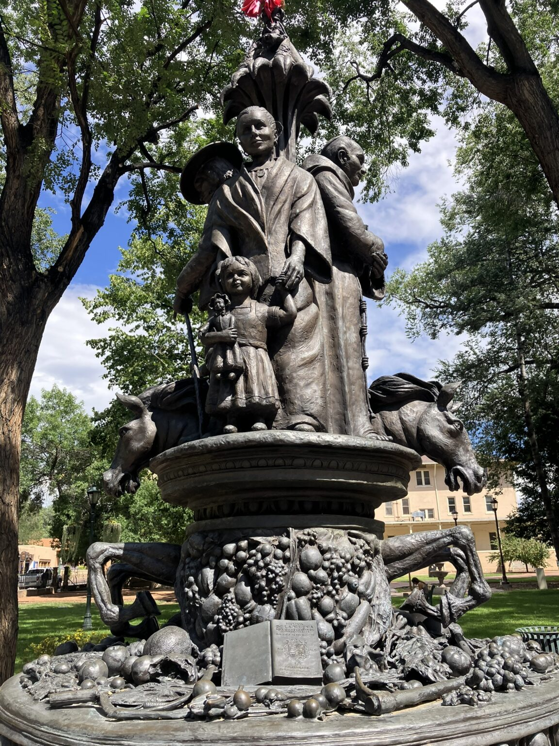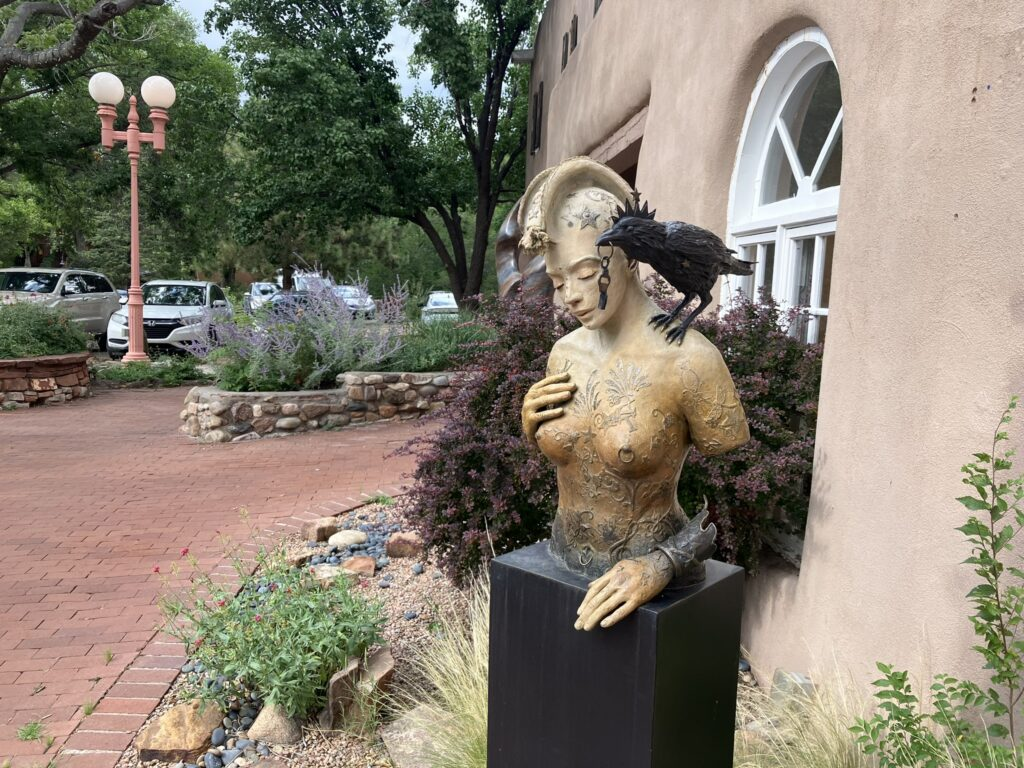 Our first stop as we came into Santa Fe, because of its proximity to where we were, was Canyon Road, which is the art gallery center of Santa Fe, and an incredible area, with over one hundred galleries of all kinds, but all with incredible (and usually very expensive) art, including paintings, photography, sculptures, and outdoor installations, as well as shops and restaurants and smaller eateries. It is really an incredible street, not more than maybe half a mile. It is also surrounded by incredible homes and grounds. We checked on the price of one home in the area, valued at $3.5 million.