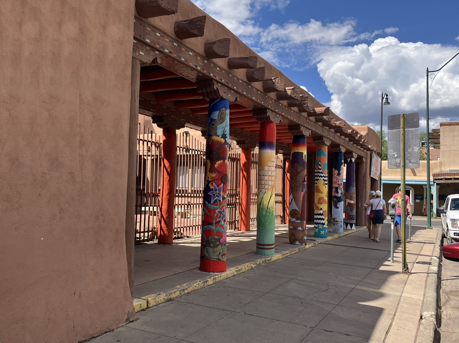 Coming into Santa Fe, now back on the main highway, is also lovely, with local style adobe buildings of all sizes (including local large casinos and resorts), along the highway and well kept and beautifully kept over passes decorated with indigenous art. Everything is so nice looking, well-presented, and in keeping with the environment and culture.