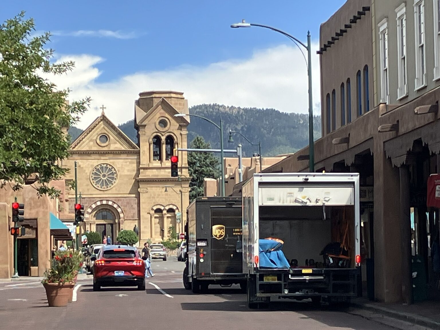 The Santa Fe Plaza is always lovely, and the streets leading up to and surrounding it, are equally nice. The Cathedral and Lorreto Chapel frame the square.