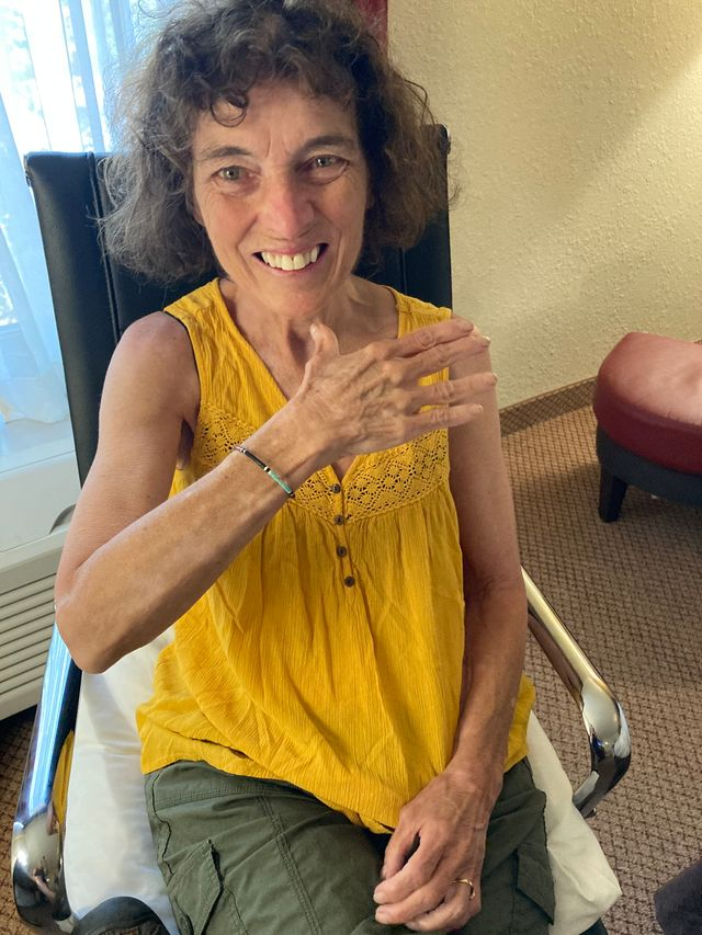 The weather was lovely, again in the 80’s, but the low 80’s today, with some occasional breeze, and later a little rain, and very comfortable when walking in the shade. It’s a helluva street to take in, and wander in and out of the many galleries and sculpture gardens. Because Bev and I (and now Kaye) enjoyed this road so very much, I released some of Bev’s ashes in one of the many sculpture gardens.