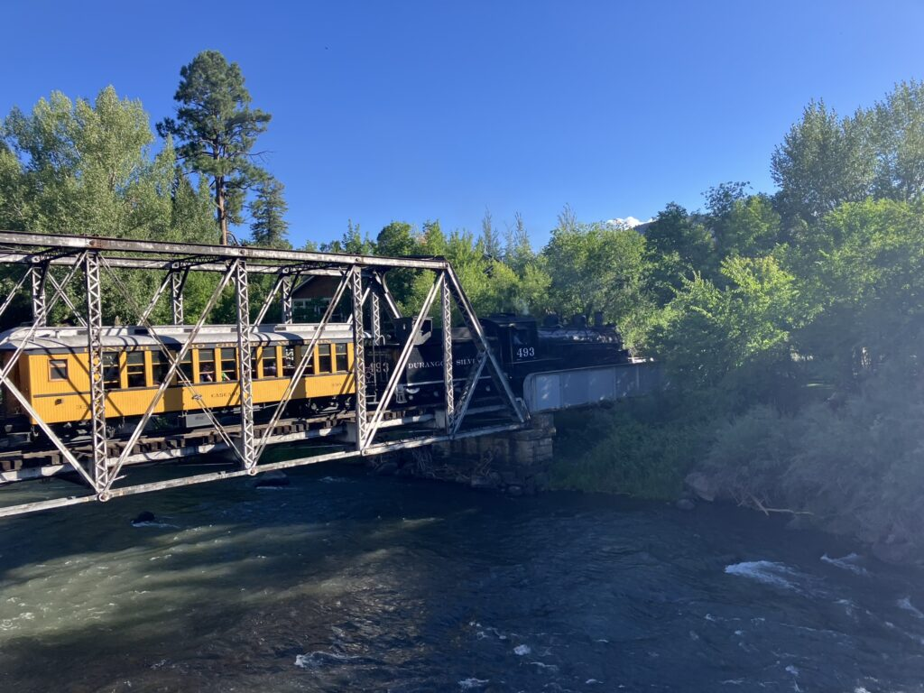 Today, we headed back up to Colorado, and things have worked well not taking the Durango and Silverton rail as we originally planned, as it was closer and easier to get to Taos from Colorado City, but also because in heading from Santa Fe to Moab, Utah, where we’ll be in a couple of days, we came back through Durango, as the half way point. We’ll stay in Durango for two nights, and tomorrow are booked on the Durango and Silverton rail. That worked out well.