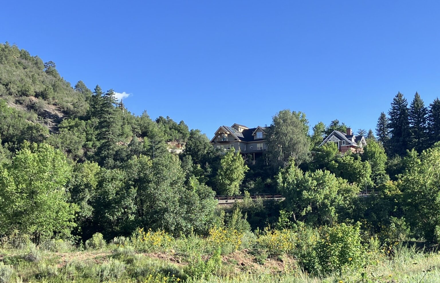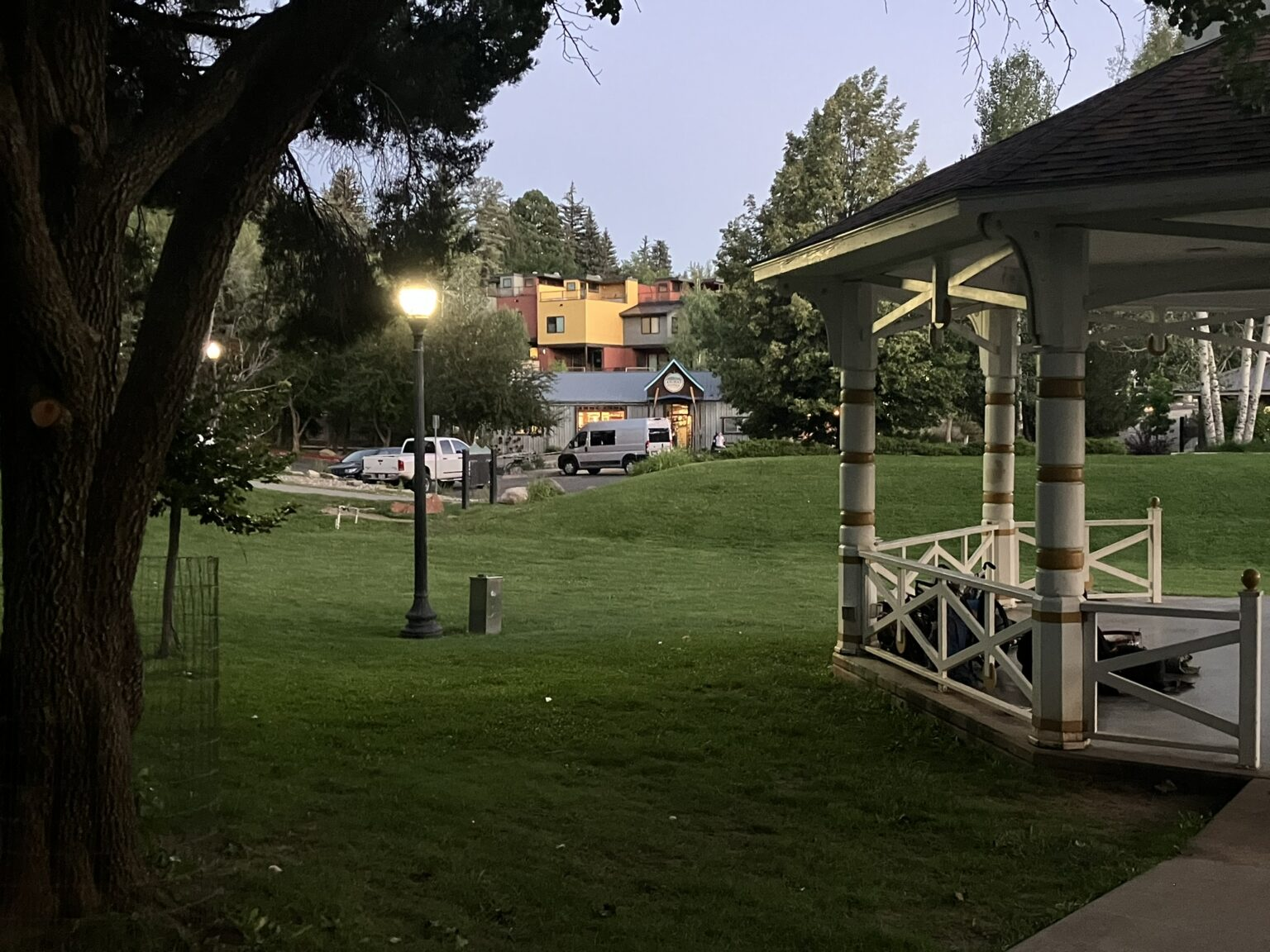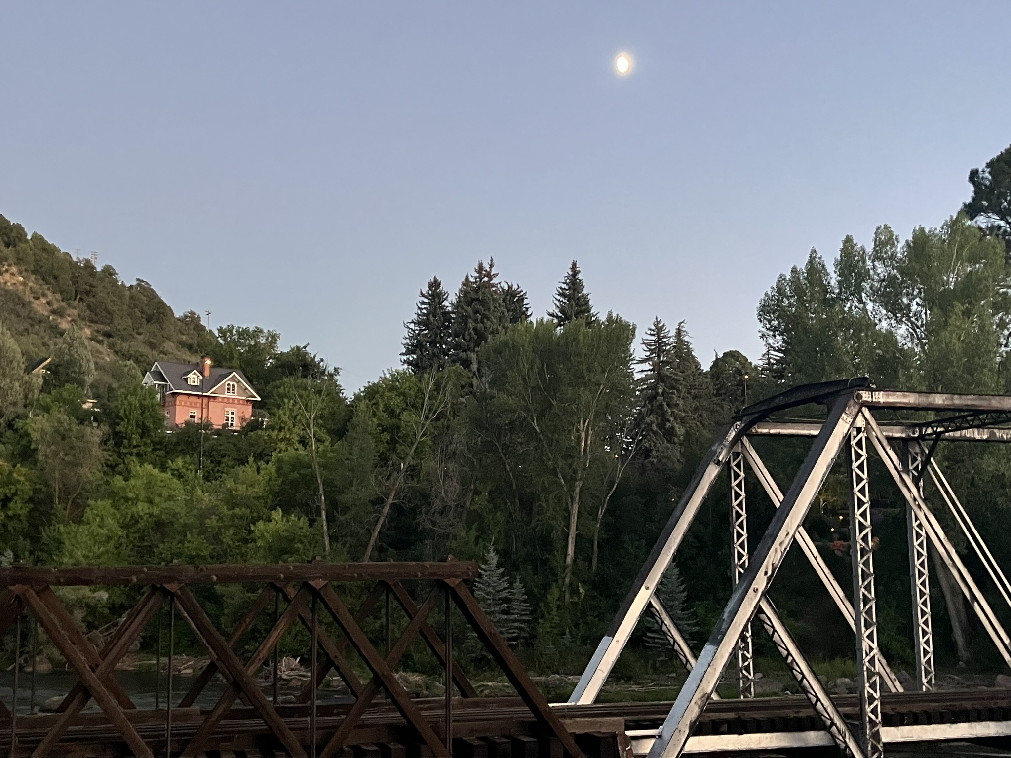 After walking into town on the river trail, listening to some summer outside concerts along the way, we had a very nice dinner sitting outside on this lovely evening, and walked back to the hotel along the trail as the dusk began to fall. I’d consider living in Durango for a while, I think. We both found it to be very welcoming and comfortable. A good day.