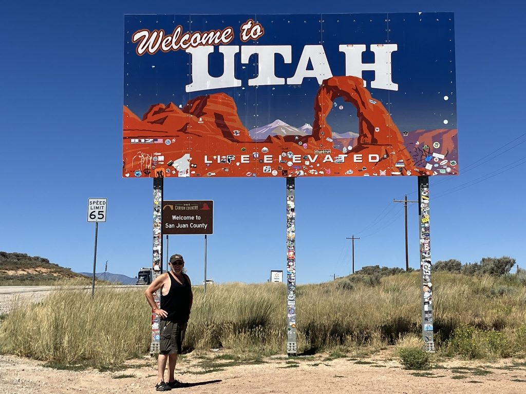 As we cross the state line into Utah, the state sign brought back memories of when I first arrived at the Utah state line, in 1976 on my motorcycle (a Honda 500). I recall stopping at the sign, sort of in awe that I, from Finchley, London, had actually reached Utah. Had to take a picture of the sign today!