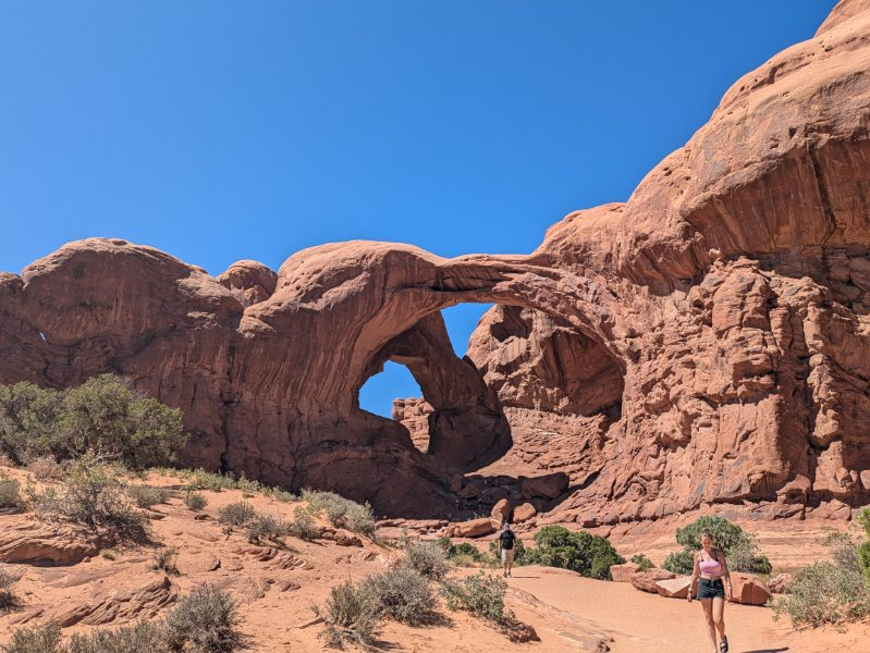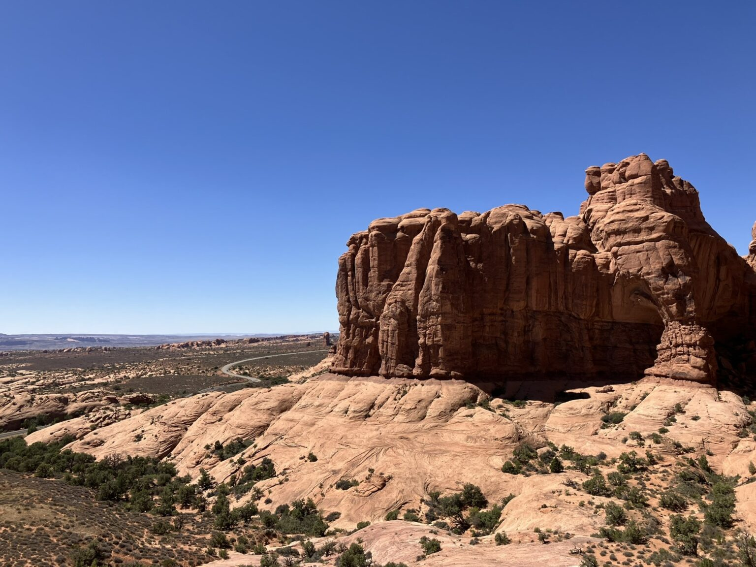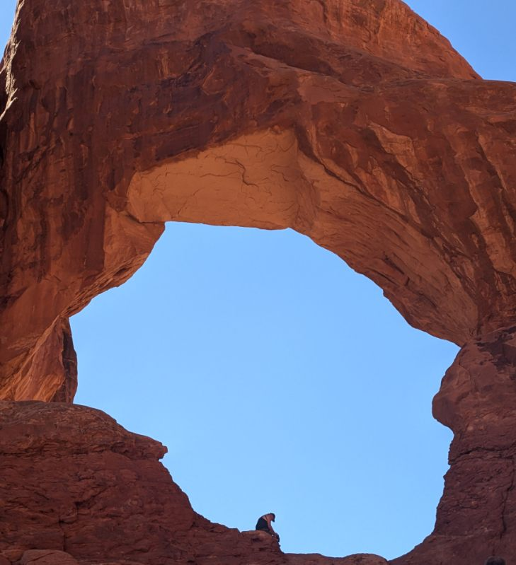 I’ve been to Moab perhaps four times before, and was in Utah with Bev in 2014. We didn’t visit Moab and Arches on that trip, but instead visited Zion, further south and to the west. But this trip, Kaye and I visited Arches as Kaye was here when she moved across country in 2009, and wanted to re-visit. I plan to visit Zion when I get back this way in a few weeks, and release some more of Bev’s ashes then. Just in case, as a “proxy,” I released some of Bev’s ashes today, into a gentle breeze at Arches.