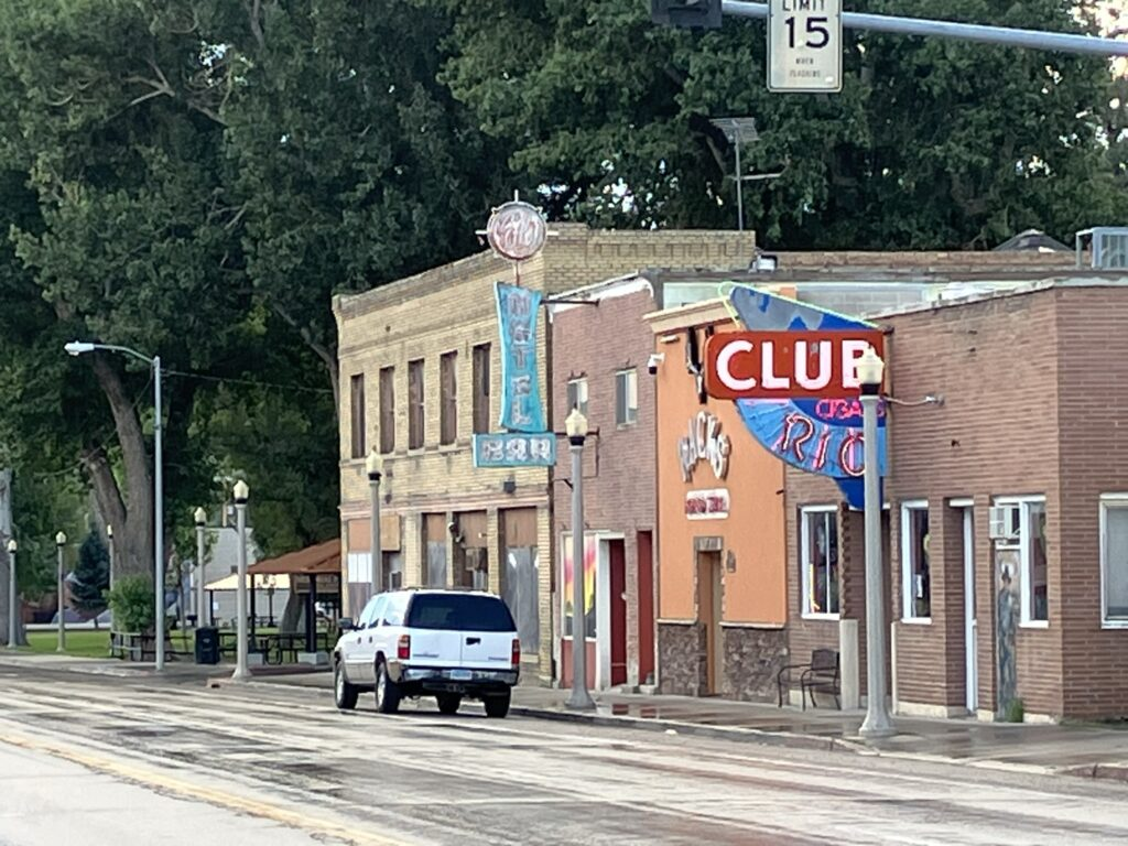 Not too many places to eat that looked appetizing. In fact, of the few places to eat, quite a few were closed for the night, or even the weekend; odd, as this is a Saturday night. None looked like anywhere we wanted to eat, anyway, with the exception of one Mexican place, but we instead bought fast food and ate at our hotel, not a bad little place – I picked it because although inexpensive, it was twice the price of some of the other motels in town, and there are quite a few – but none look especially promising, especially driving by them. And then to sleep.