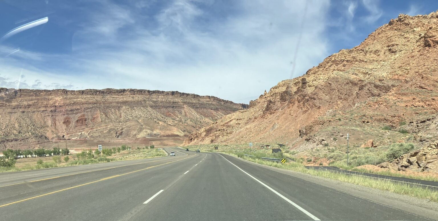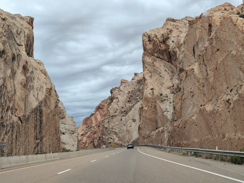 We headed out of Moab, first north and then pretty much due west, toward Sevier County, Utah, on the way to Great Basin in Nevada. We had a bit of adventure on the way (an adventure we didn’t really want).