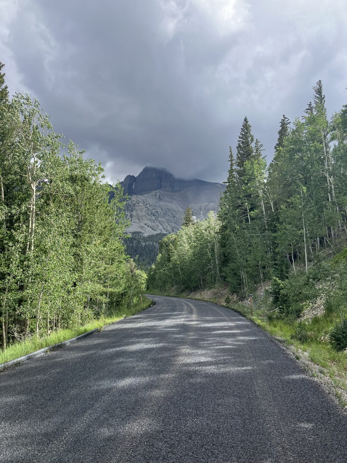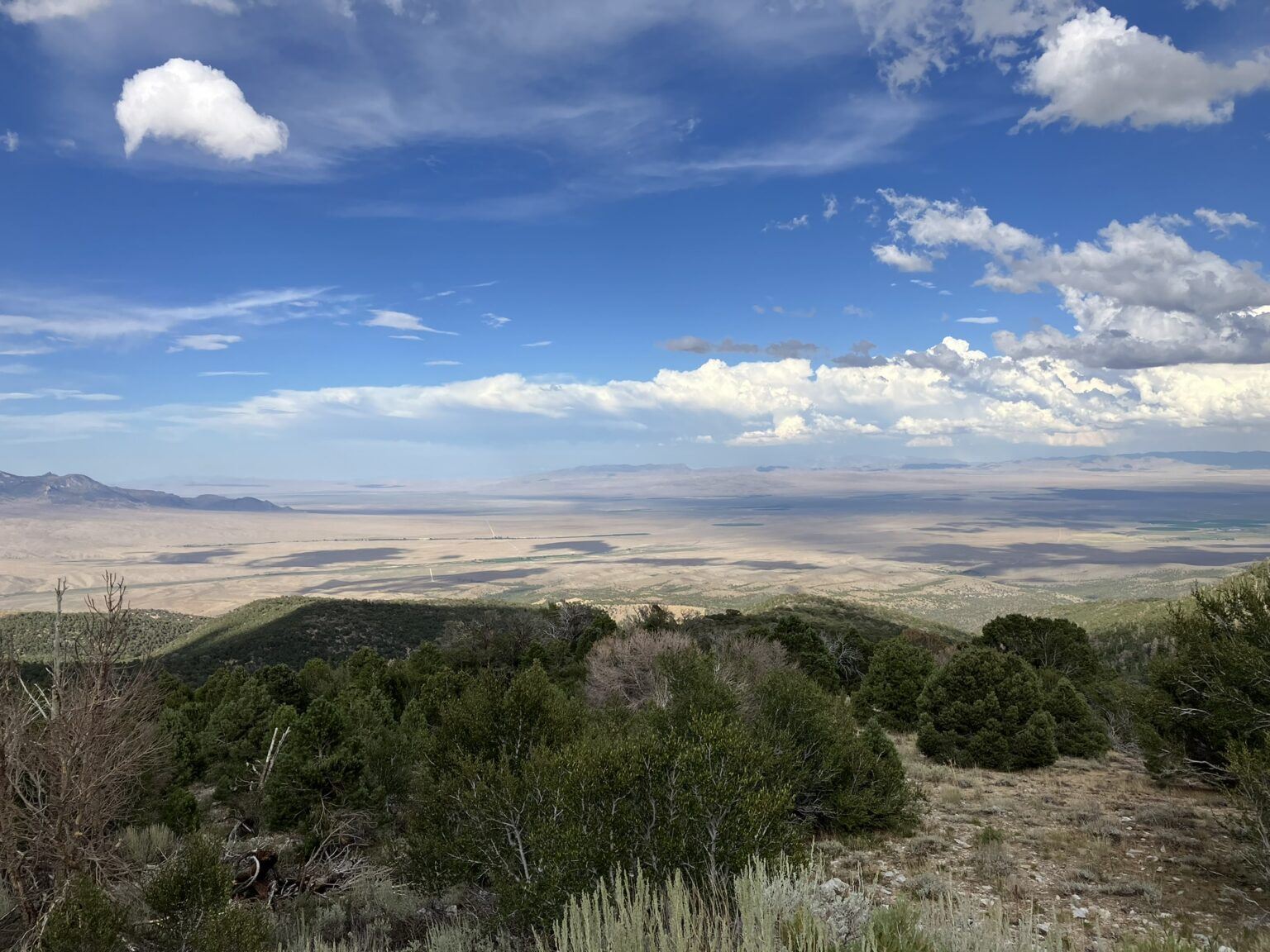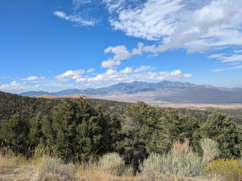 The skies clouded over as we were leaving Sevier, and we passed through some heavy rain, and saw some bolt lightning action in the cloudy western skies off in the distance. But, aside from a brief period of heavy rain, and some later light rain, the weather continued to be on our side. And then, Nevada, and a time zone change to Pacific time, so we gained an hour.