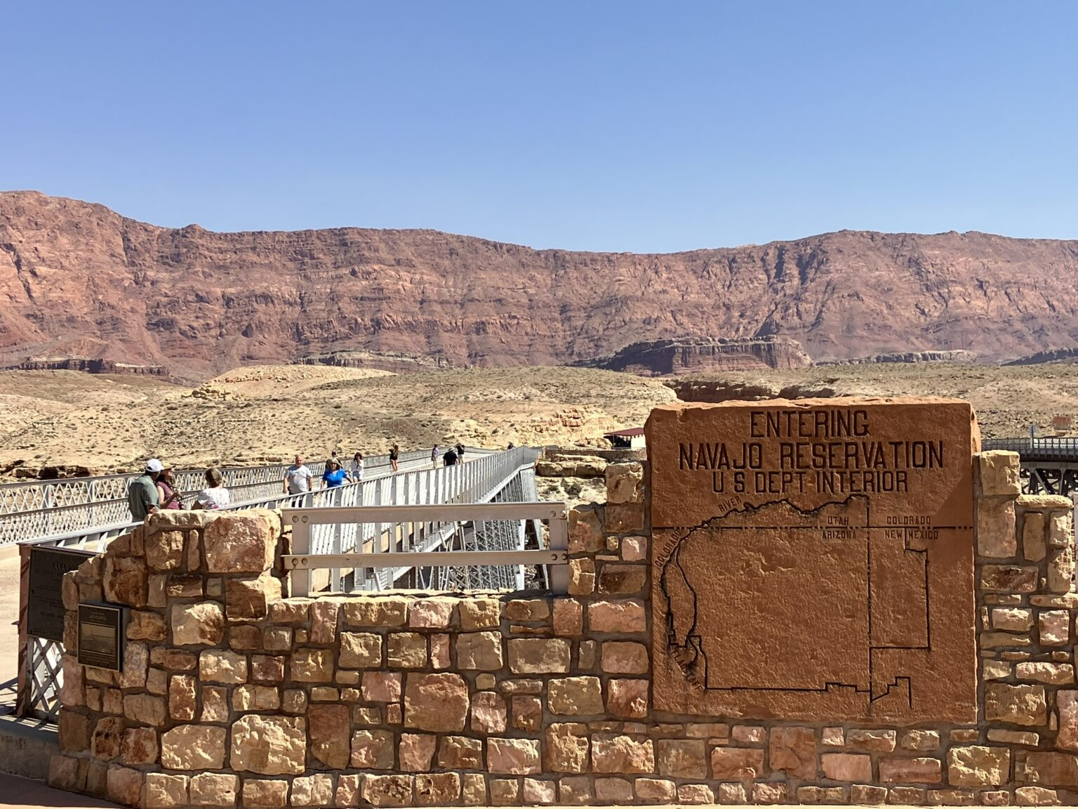 Then, unexpectedly (as I hadn’t really looked at a map), I came to Navajo Bridge in Glen Canyon National Park, Arizona, which is a magnificent pair of twin span bridges, one for traffic on Route 89 and the other for pedestrians, 834 feet long and 467 feet above the Colorado River, in the mighty Marble Canyon. Wow!