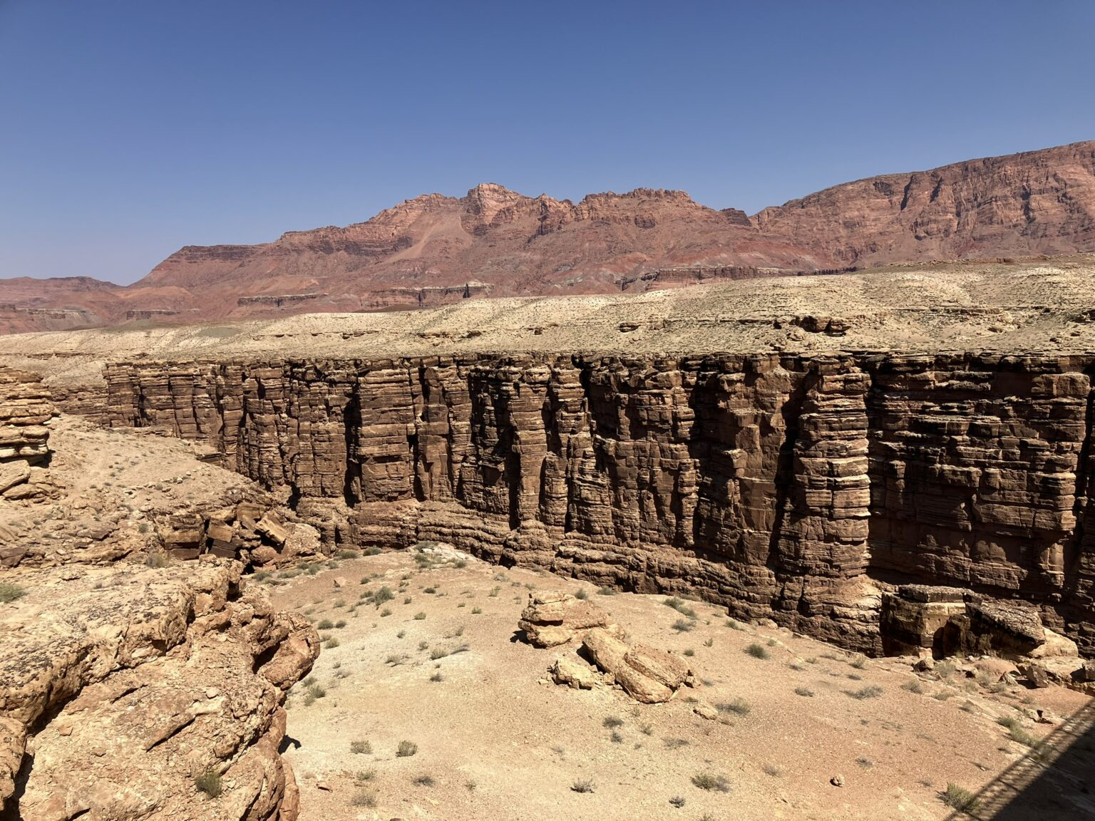And even more of a surprise, again because I hadn’t actually studied the map, immediately after crossing Navajo Bridge is Vermilion Cliffs, where Bev, Kaye, and I visited in 2021, another amazing sight.