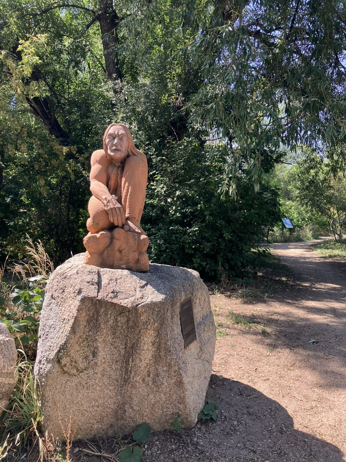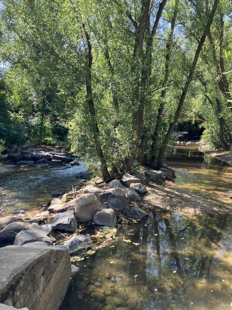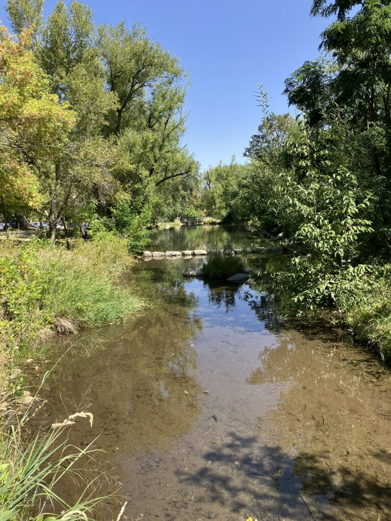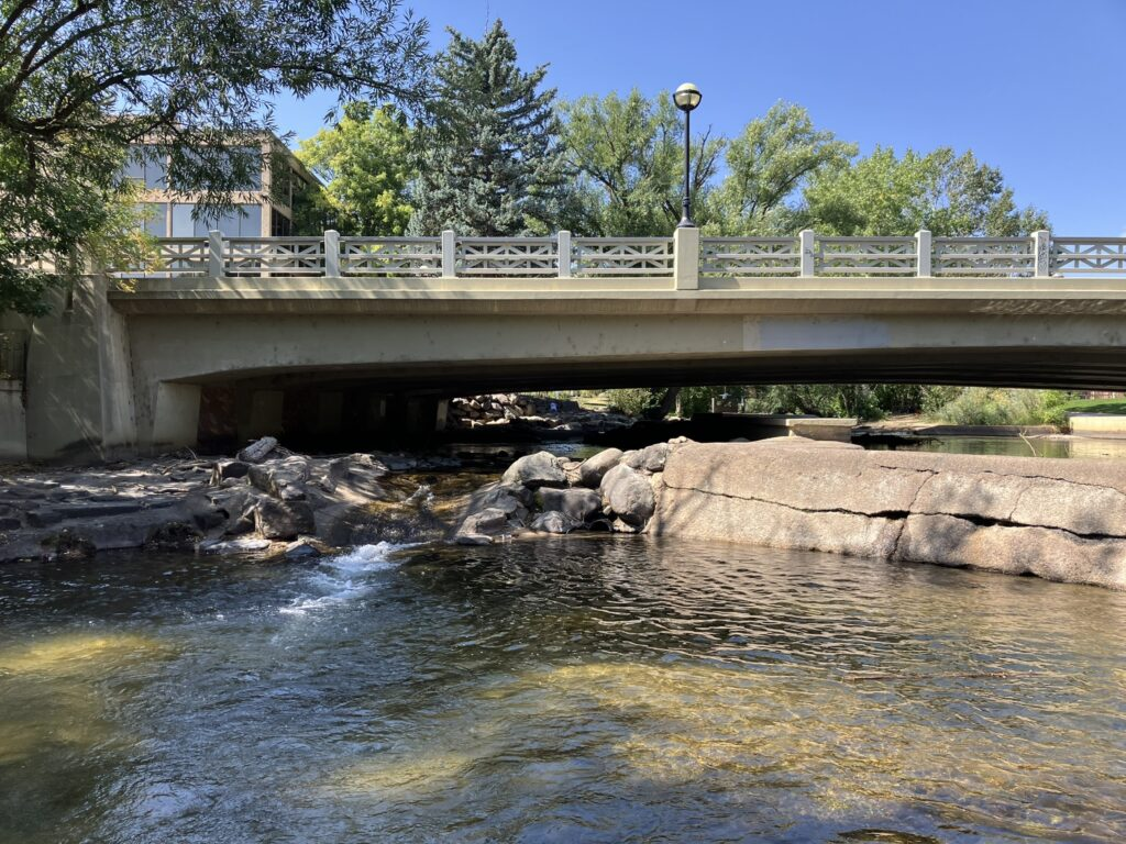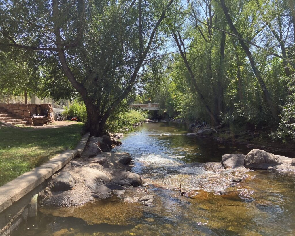 Then I headed back into town, and walked Canyon Boulevard for a short distance until turning onto Boulder Creek path, which, unsurprisingly, follows Boulder Creek, a lovely small river running through the town, with people and families relaxing, picnicking, and even fishing along the way. Despite its tranquility, though, there are warning signs along the way, because in bad weather the area can flash flood and become dangerous.