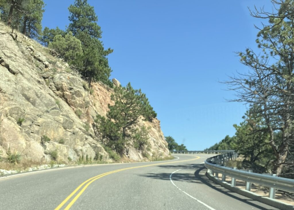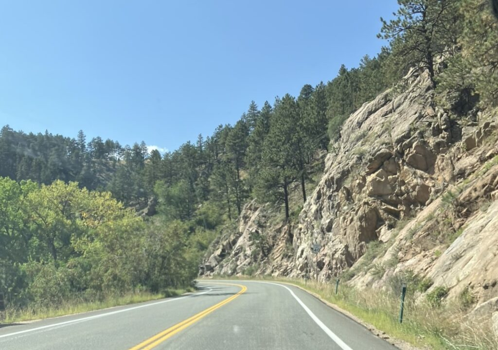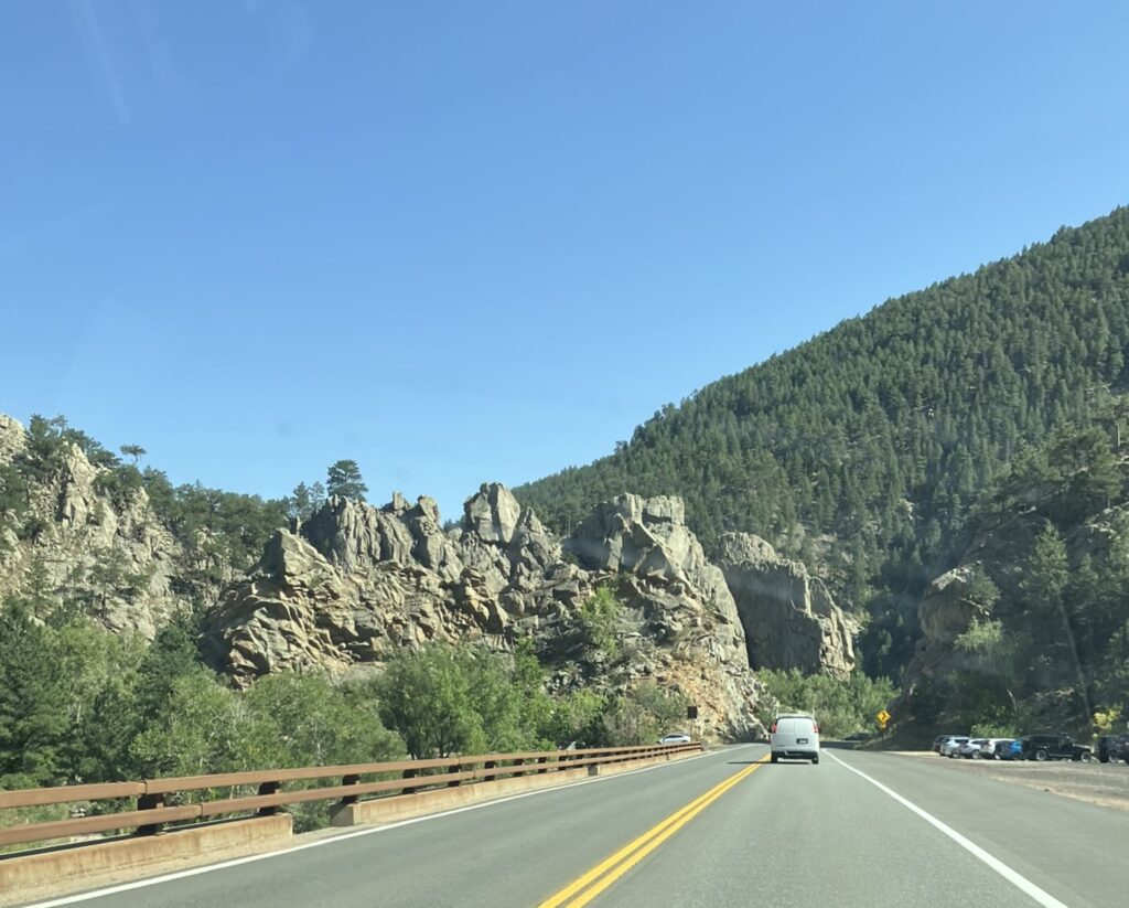 Before heading back to Denver, and visiting Shikha, I drove part of Boulder Canyon, starting at Canyon Boulevard, which quickly turns into the windy, twisty, and boulder lined Boulder Canyon Drive, which I drove for maybe 30 miles round trip, at one point taking a side road and going higher in the mountains (until the road went no further, at which point I had to very gingerly turn around without backing off the very narrow road and down the canyon). Exhilarating drive, heading west away from the city.