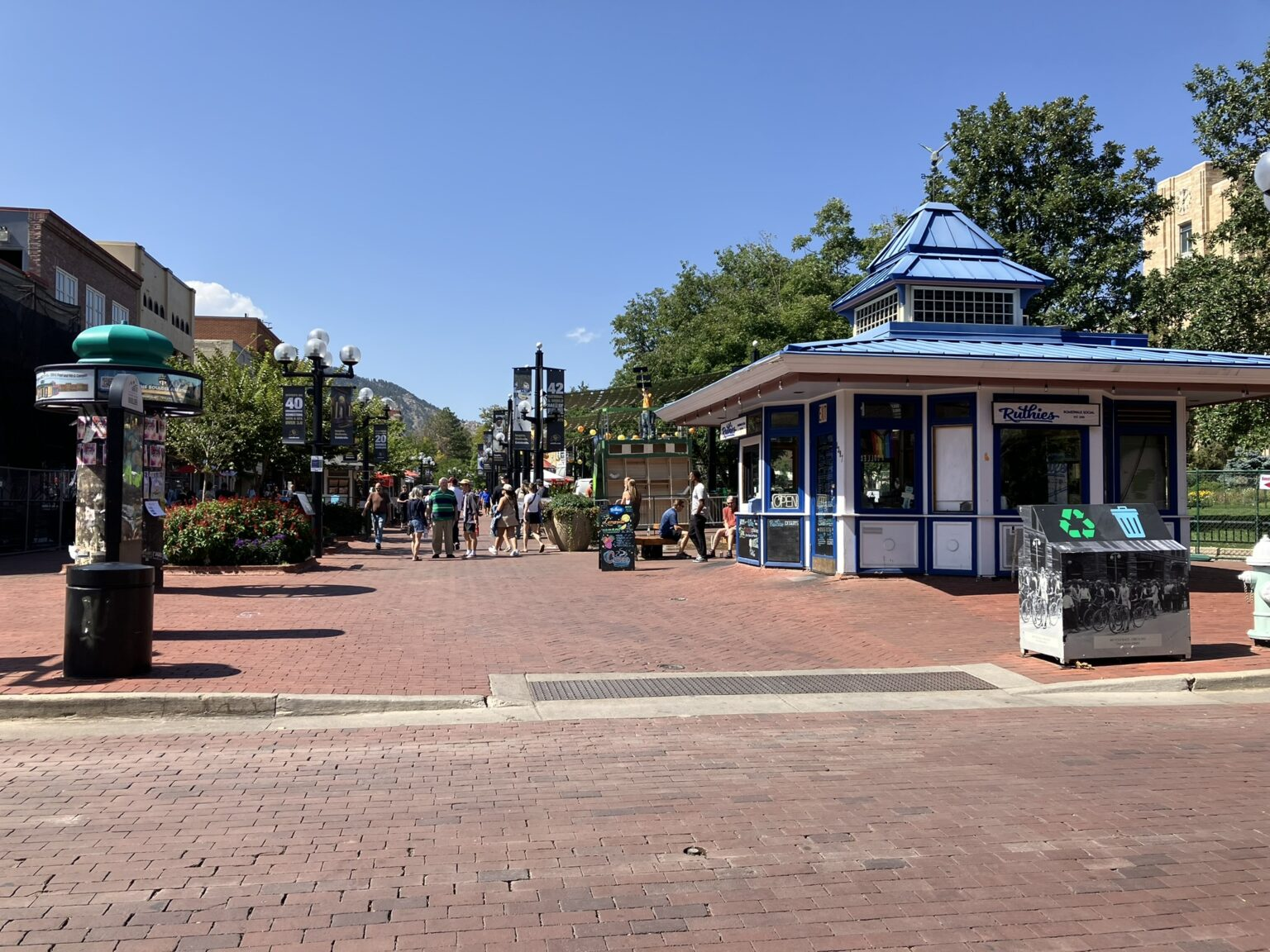 This time, although I did walk the Pearl Street mall, I mostly walked the residential and downtown streets, university campus, and parks. After finding a random parking spot near the University (Colorado University at Boulder), I just started walking, and covered about 7 miles before returning to my car. It was quite the walk, with the students in full force, across and near the campus and on the fraternity and sorority houses on nearby residential streets.