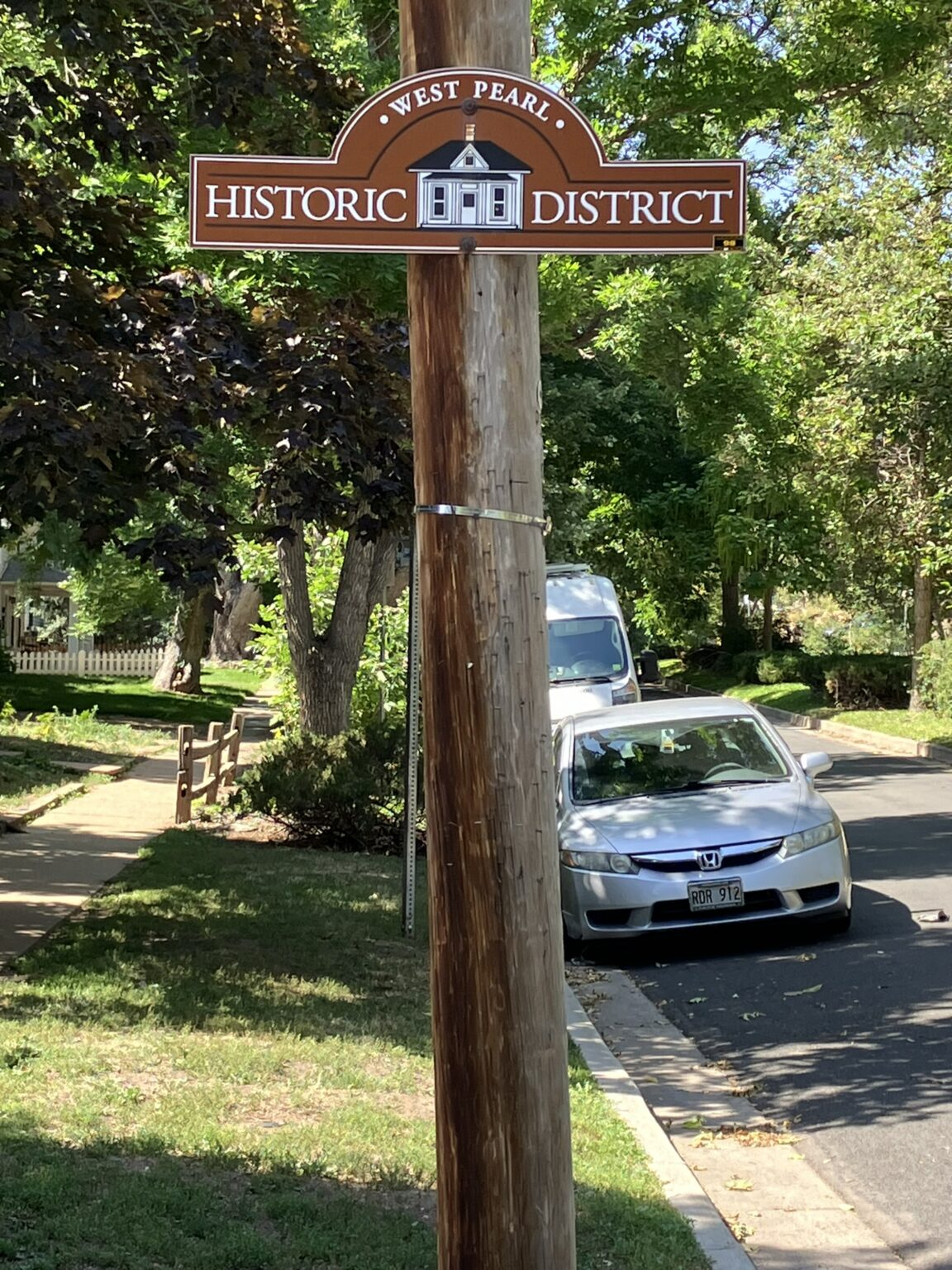 As I headed along Pearl Street, past the pedestrian mall and once it becomes a residential street, toward the small trail system in Boulder near the intersection with Canyon Boulevard, I passed into the historic district, which Kaye and I visited, as did Bev and I last time we were here.