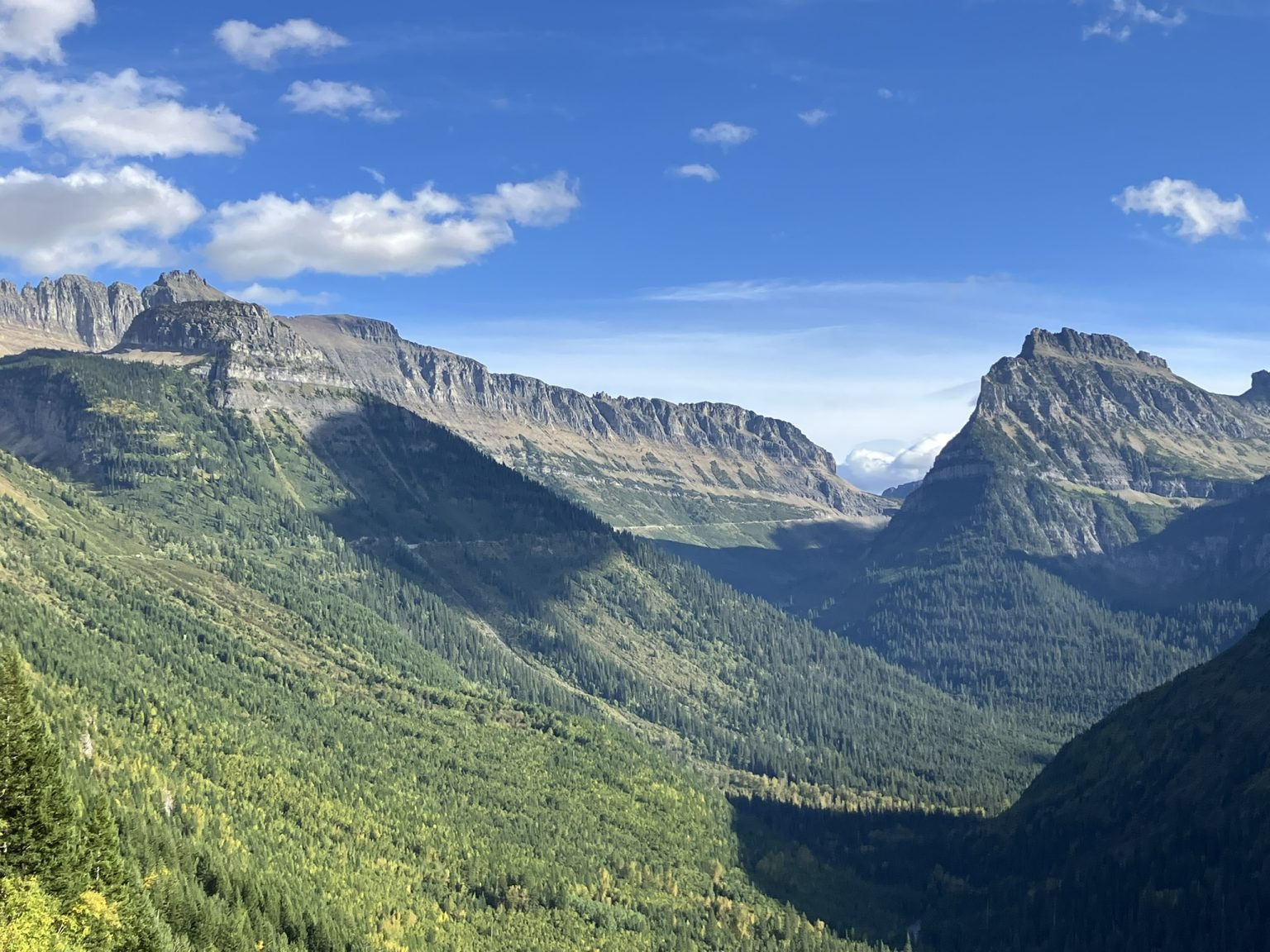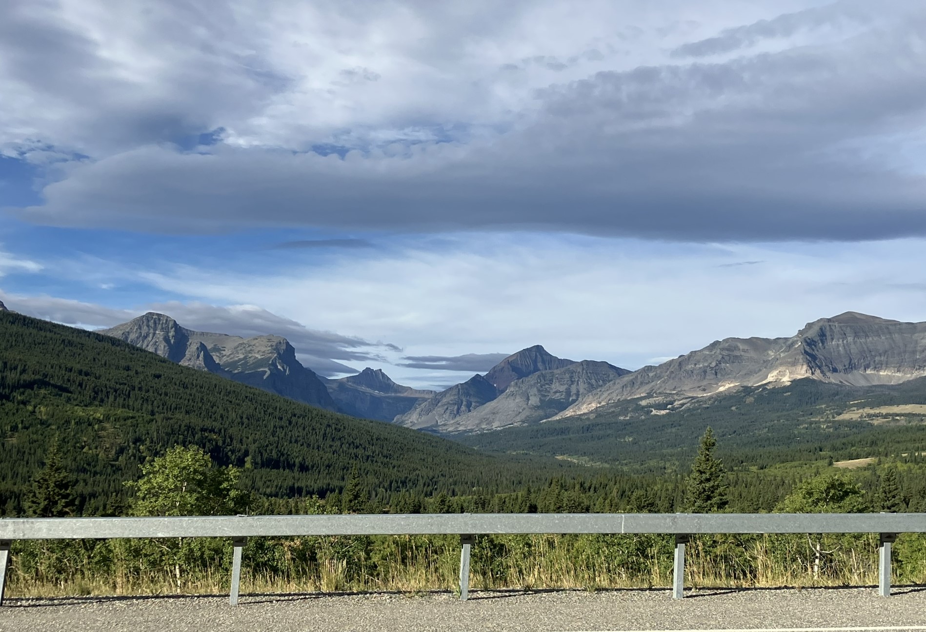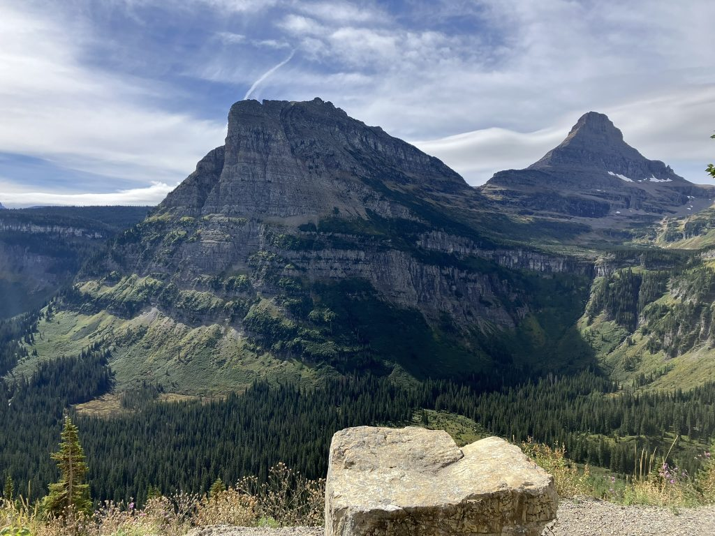 The landscape is pretty flat, for the most part, in this part of Montana, but as I got closer to Glacier National Park, mountains started to pop up — the Rockies, of course, which in Glacier consists of the Clark, Lewis, and Livingston Ranges. This is why the Cut Bank town sign reads “where the Rockies meet the Plains.”