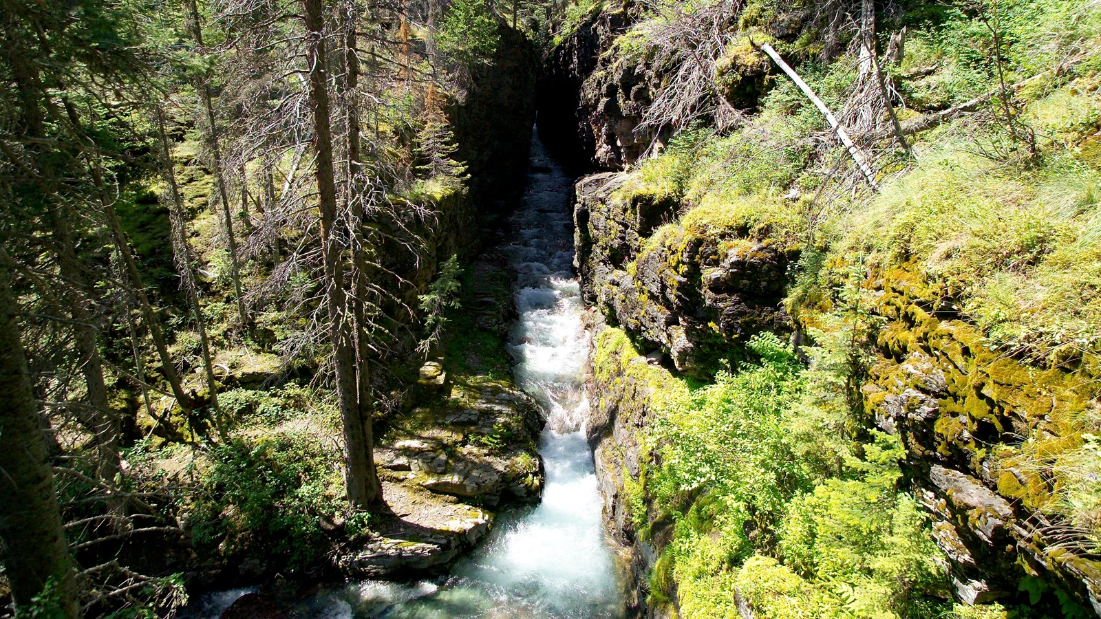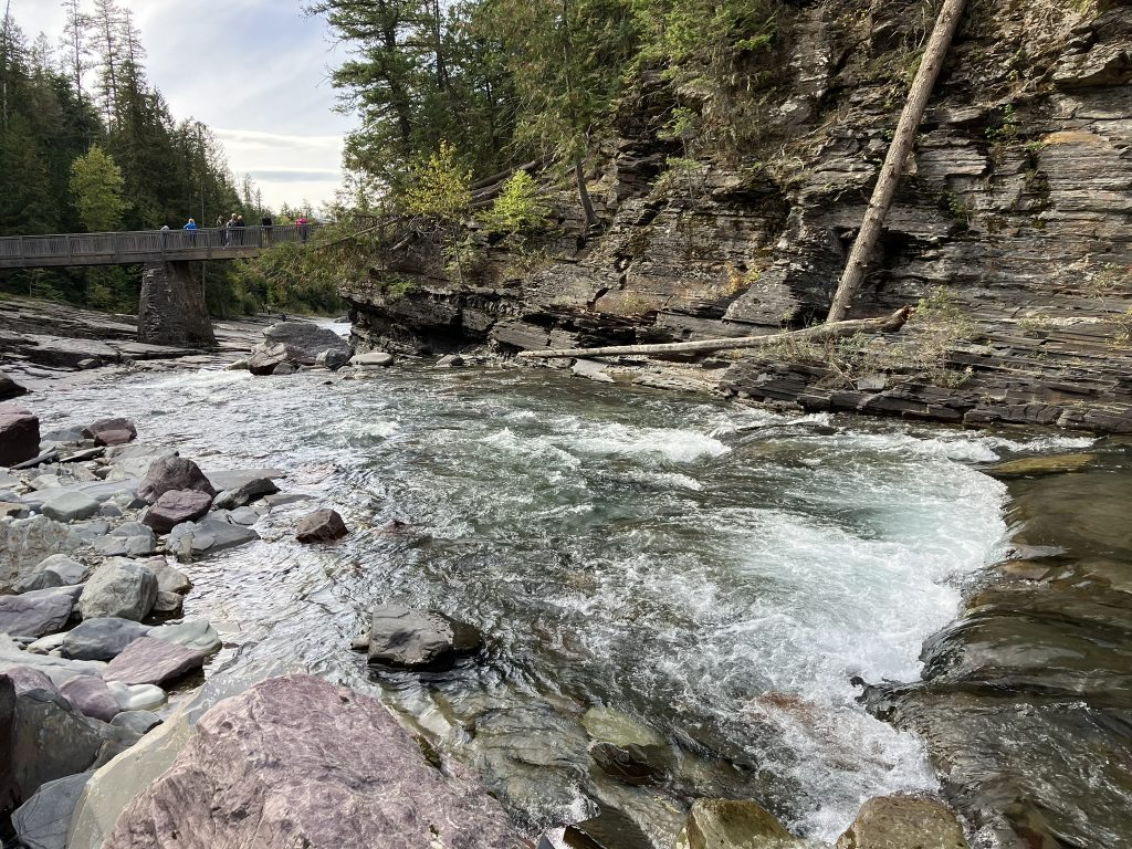 From Sun Point, there’s a nice trail that goes to three different falls, Baring Falls, St. Mary Falls, and Virginia Falls trails, with Virginia Falls the furthest away and the most arduous as it goes uphill quite a ways, i think. I started along that trail, first visiting the Sunrift Gorge, along a short side trail, and then planning to head further along to the first of the three falls. I never actually past the Sunrift Gorge, though.