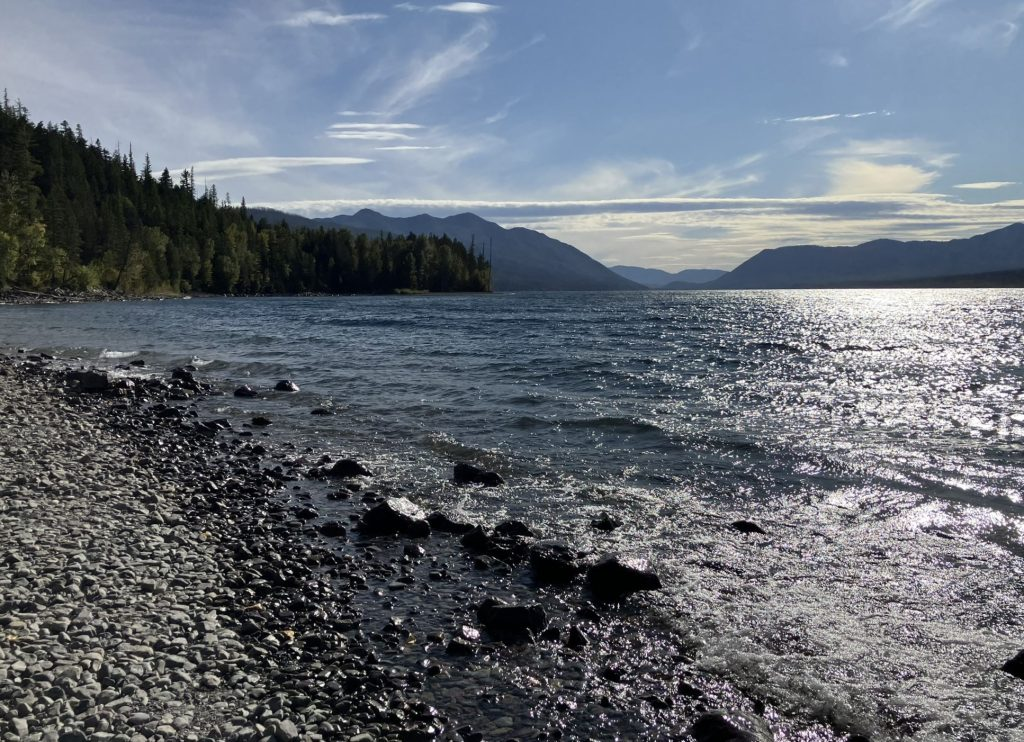 Okay, I admit it; I could have walked a ways along the Apgar Lookout Trail and turned back without going the full distance, but I didn’t. Instead, I headed back to the main road, continued heading south and passed McDonald Lake, which is the largest lake in the park, looking quite dramatic at this time of day.
