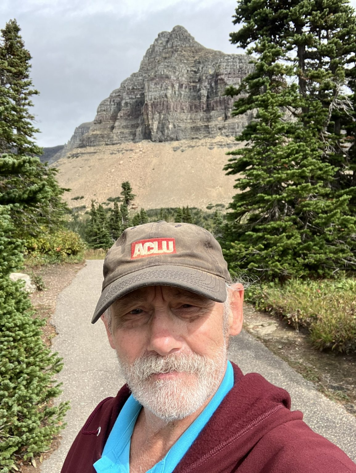 Anyway, for safety’s sake, I took a photo of the guy and his ID before letting him into my car, and made a point of telling him I’d emailed that to a friend. That seemed the prudent thing to do. It turned out okay, and he wasn’t a park killer, and I drove him to his jeep, and then stopped at the Logan Pass visitor center, where I still couldn’t get any water. I spied the Hidden Lake trail, as well as the Highline trail, both of which start out near the visitor center. Just a few days ago, a hiker was attacked by a bear on the highline drive. He was badly injured, but survived. Every trail here starts with a wanting to carry bear spray.