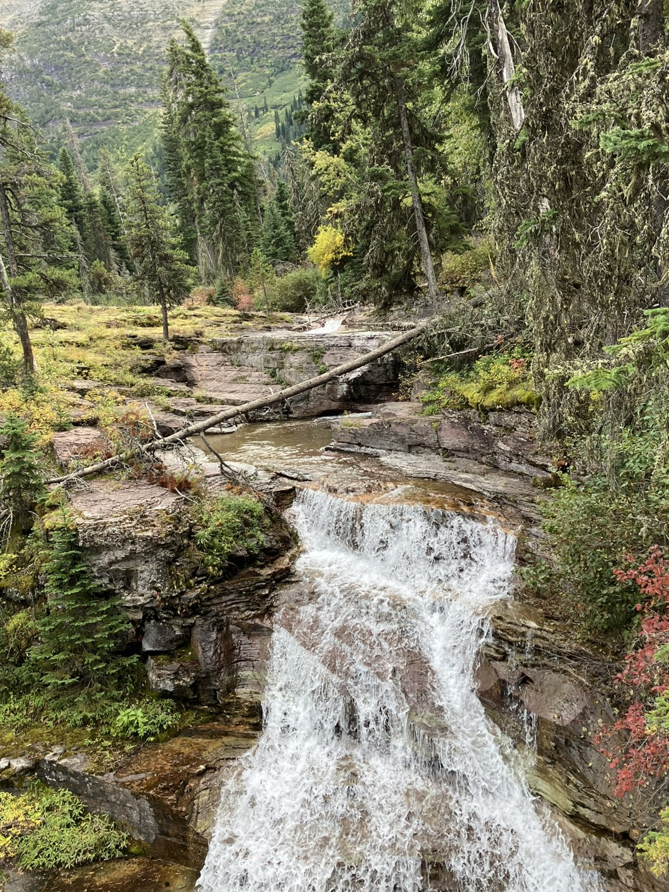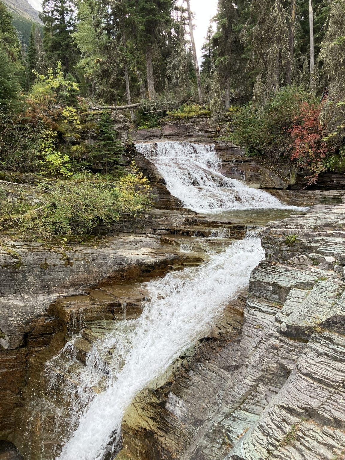 Then, it’s a little less than a mile to Virginia Falls, with lovely small river waterfalls resulting from the runoff from Virginia Falls above. Each of these was worth stopping at and exploring, and you might even wonder if these were Virginia Falls, but they weren’t.
