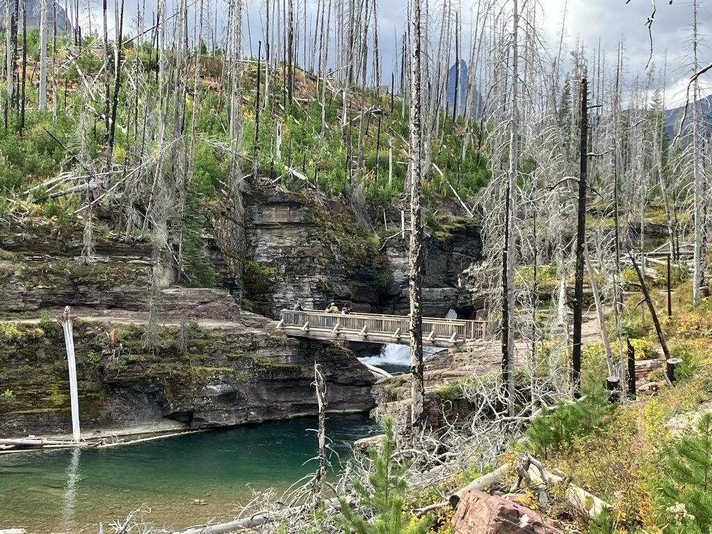 It was a short hike from St. Mary Falls, but pretty much all uphill, with even more hikers coming asking how far is it to Virginia Falls, and was the view worth it. It was. It was lovely coming in, but if you scrambled up the small trail in the woods, the views got lovelier as you got higher. I could feel the spray from the falls. Just lovely.