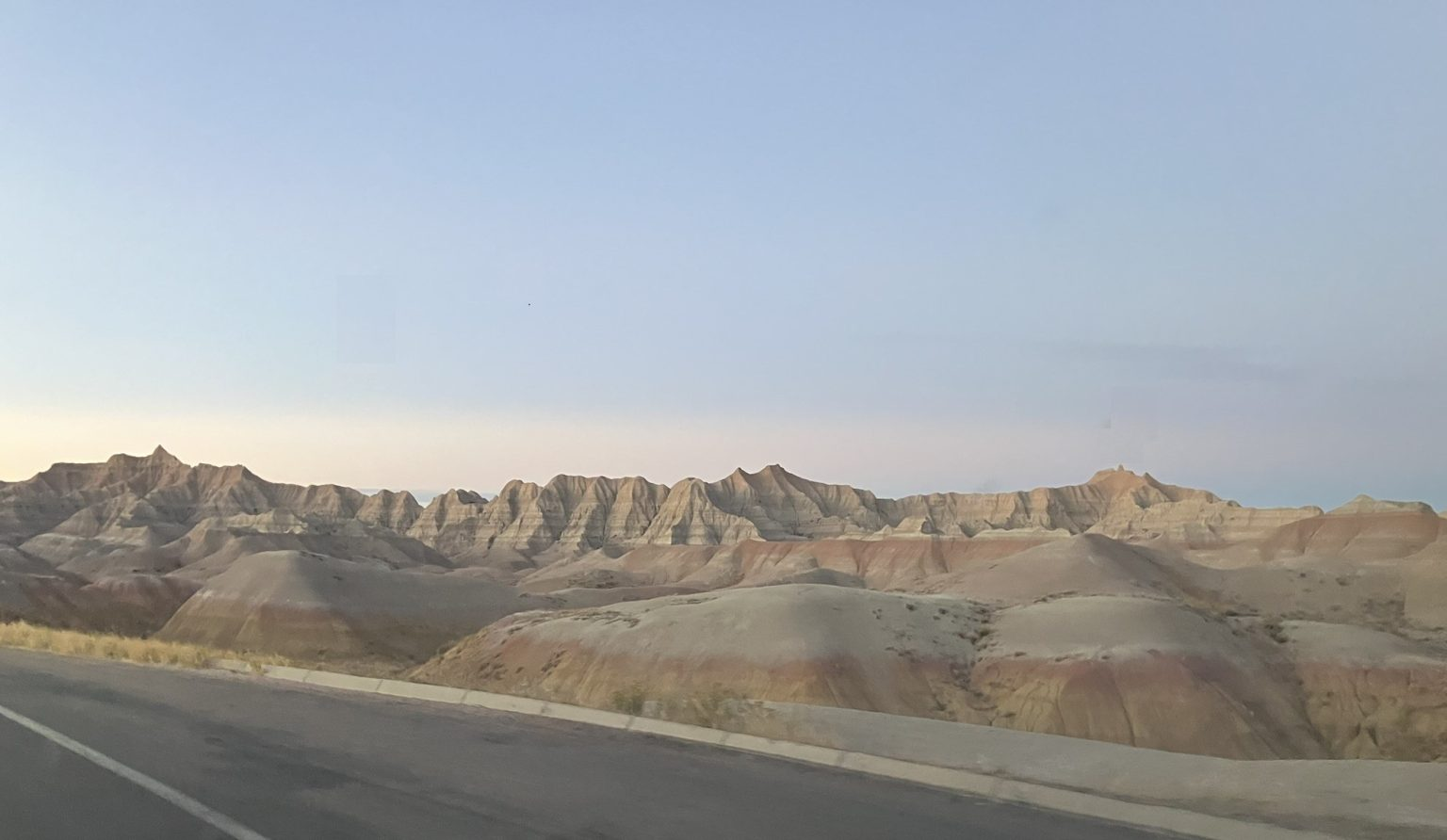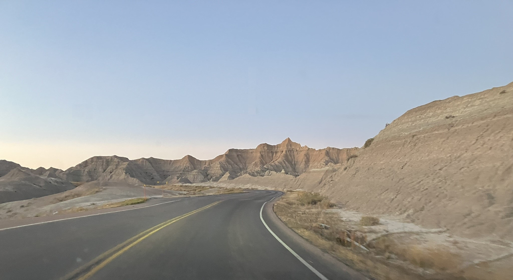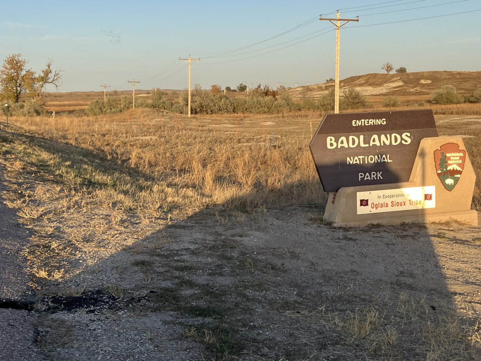 After driving along an empty and grit covered BAI road for some time, the car GPS finally agreed with google maps, and I felt more assured, especially as it was starting to get dark, and eventually I reached an actual entrance gate for the park, but from there it wasn’t too far back to Wall.