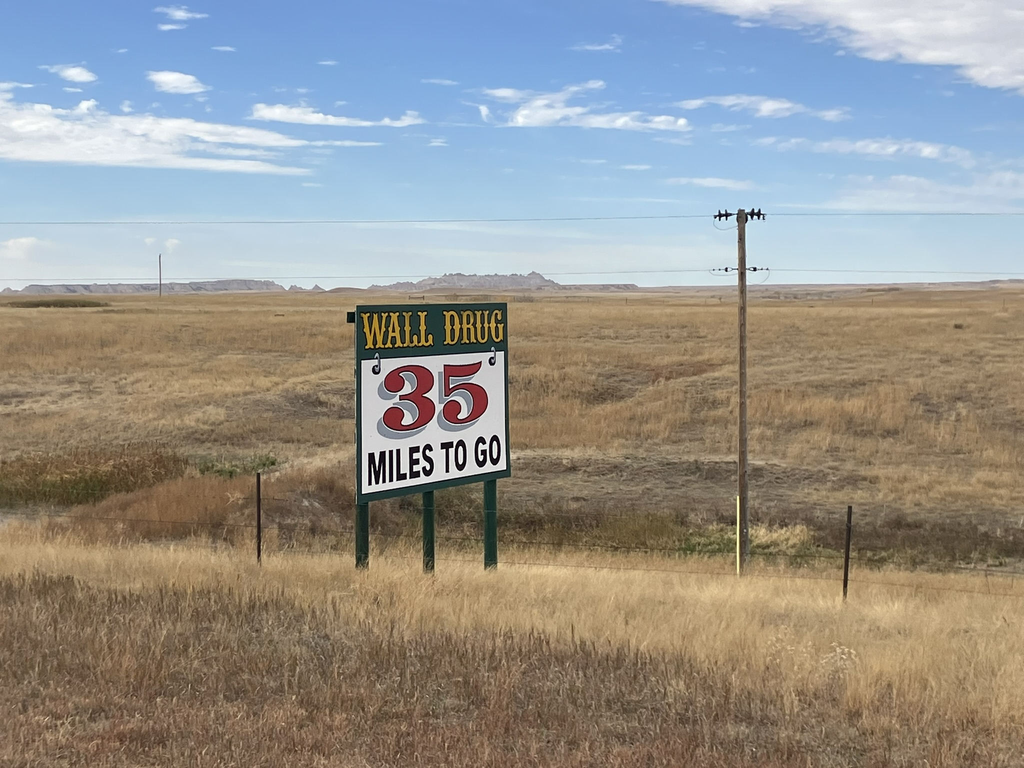 Another very nice day of driving and visiting, starting with the town of Wall itself, and actually Wall Drug, which essentially seems to be Wall, from what I can tell. I mean, Wall Main Street is mostly taken up by the Wall Drug building, and Wall Drug seems to have various business offshoots throughout this mall town. I mean, even the Welcome to the Town of Wall sign says “Home of Wall Drug” right on it as its main feature.