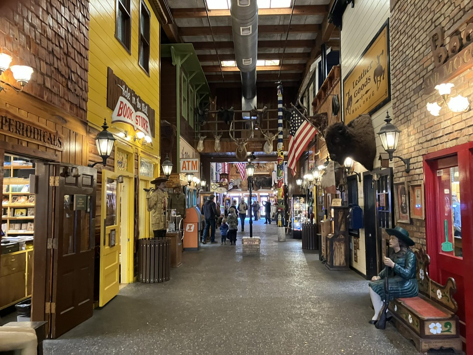 Wall Drug has a cafe (maybe more than one) and multiple departments, with clothing, shoes, jewelry, cowboy hats, cowboy boots, fast food, sit down meals, candy, gifts… you name it. I think it even has an actual drug store.