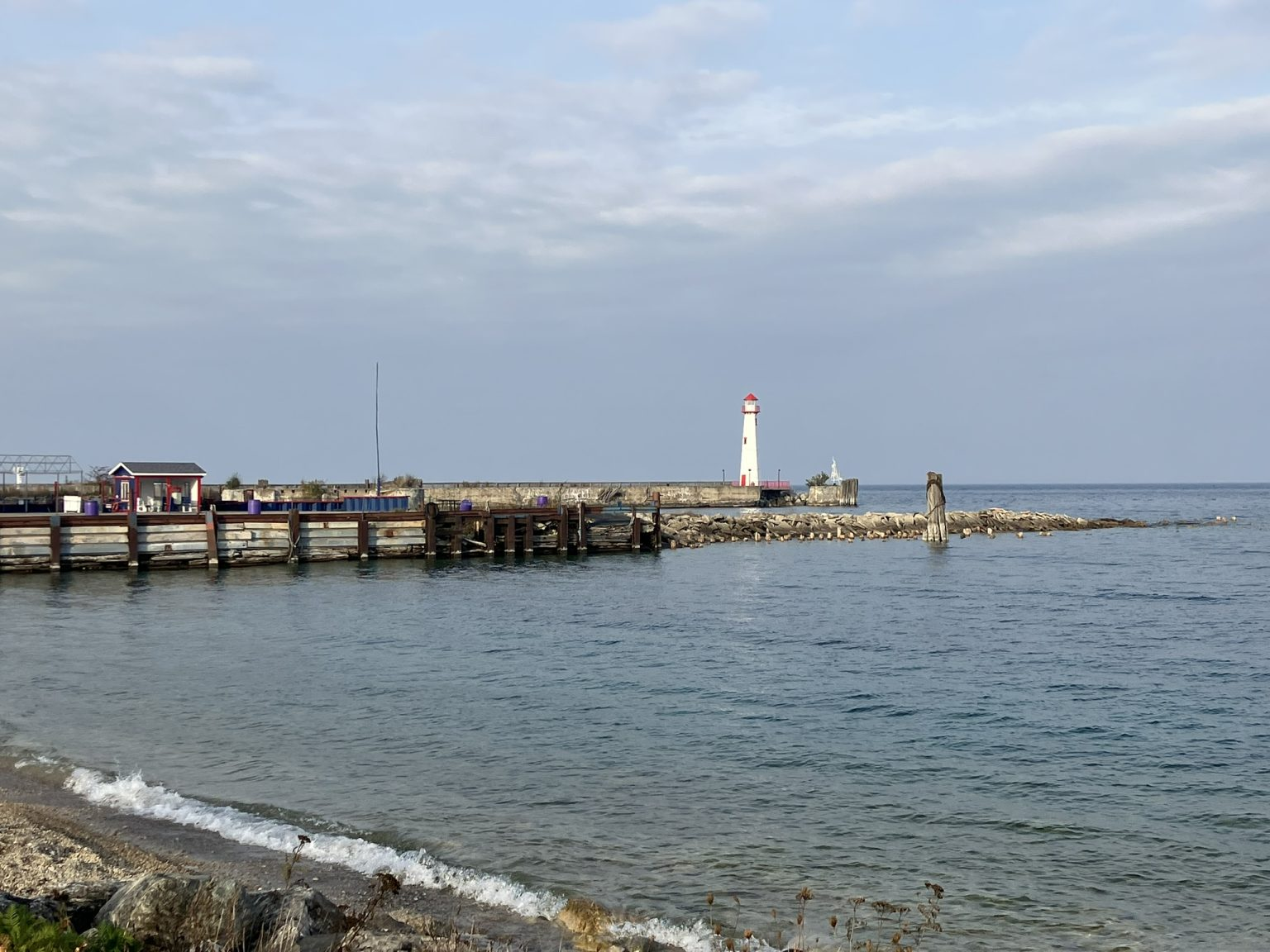 But things got even more interesting as route 8 turned into route 41 north for a short while and then route 2 east, and I turned a bend and, quite unexpectedly, the shoreline of Lake Michigan burst into view. Actually, it was Green Bay, which is a bay of Lake Michigan. Wow was my experience, as it just popped up when I wasn’t expecting it, and from then on the drive was along the lake coastline, along route 2, or Top of the Lake Scenic Drive, following the western and then northern shoreline of Lake Michigan.