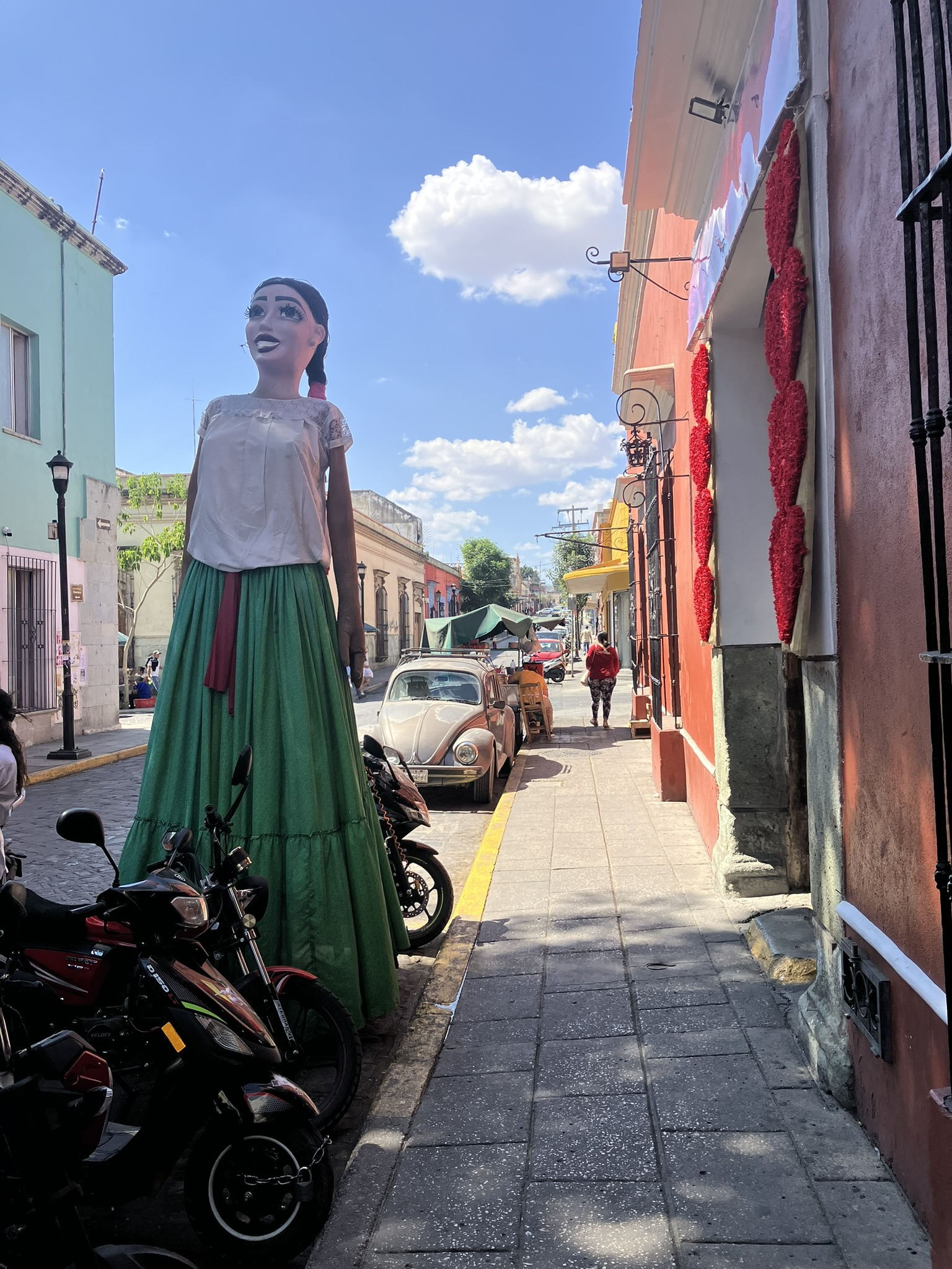 Rachel and I spent time walking around the city, walking a couple of miles or so. Rachel is in a more residential area, Barrio Xochimilco, the oldest district in the city, and a little north of the more central area, but it’s less that a mile or so toward the city proper, with its squares, parks, churches, and many stores, restaurants, bars, and art galleries. Lovely place, very much what I expected. It’s certainly become a more tourist-centric place in the last few years, but is still very much as it must have been 20 years ago, despite new businesses coming in.