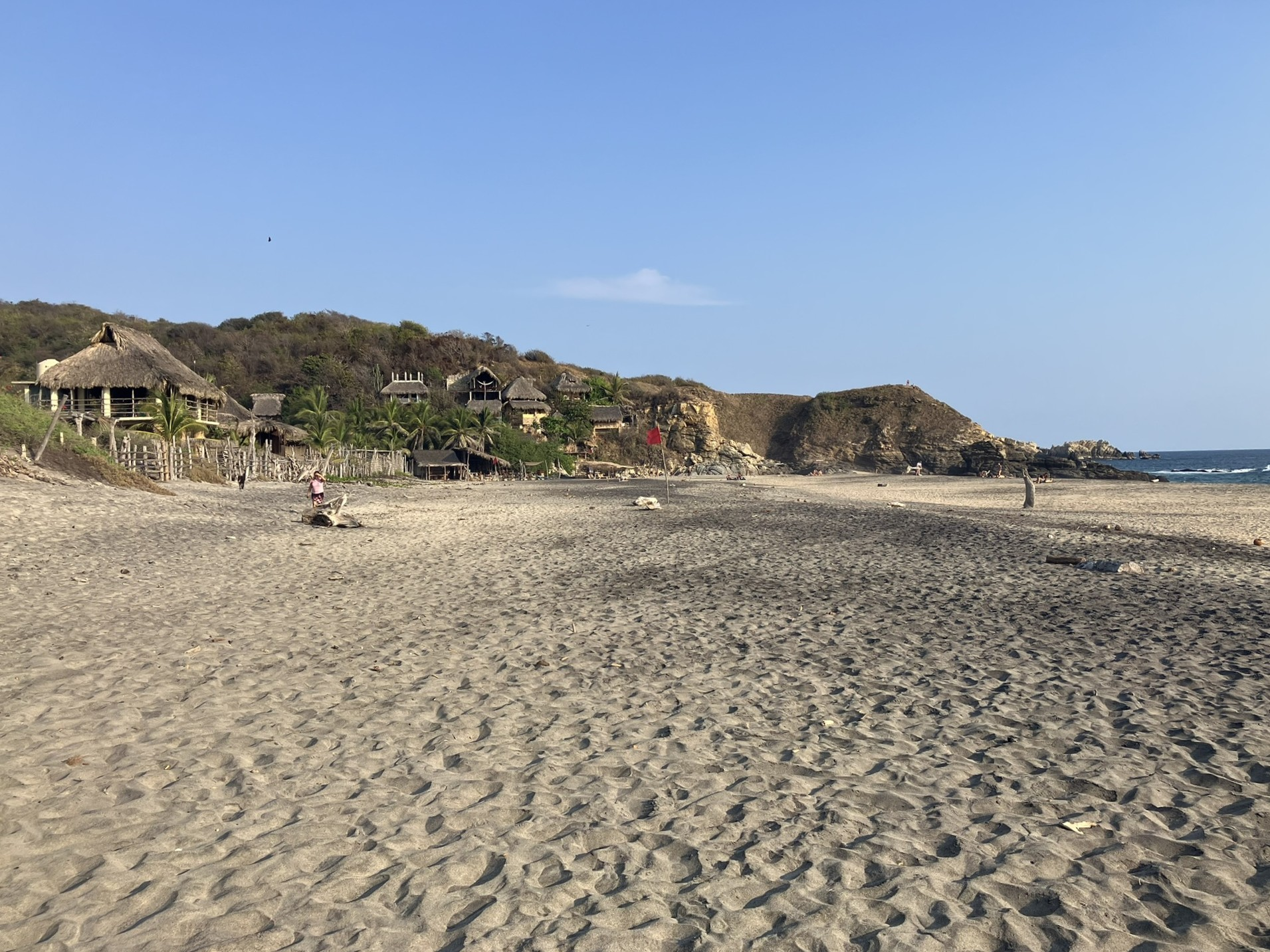 I spent a couple of hours in the morning just hanging out with Anna and Lance, and then I took off for a couple of mile walk, heading to Punta Cometa, which is the point/peninsular that separates Playa Rinconcito from Playa Mermejita, from which you can see the sun rise in the east and set in the west, all along the same horizon, the only point in Mexico from which that’s possible. Of course, you’d have to sit there all day.