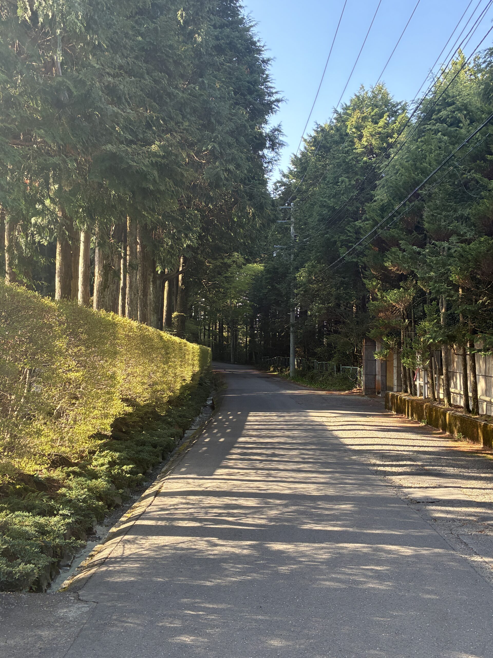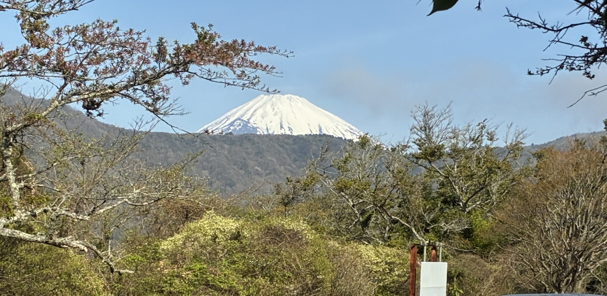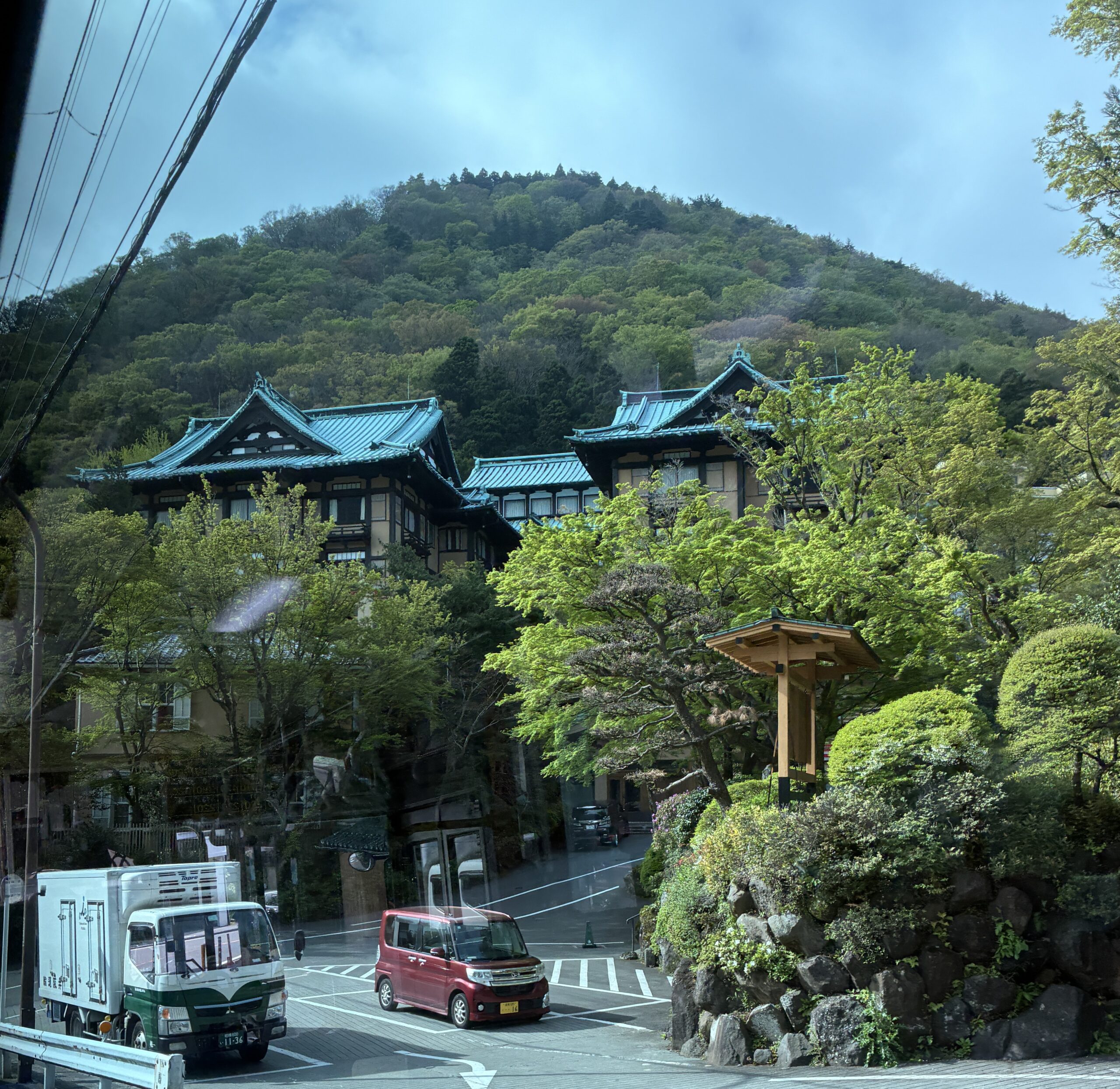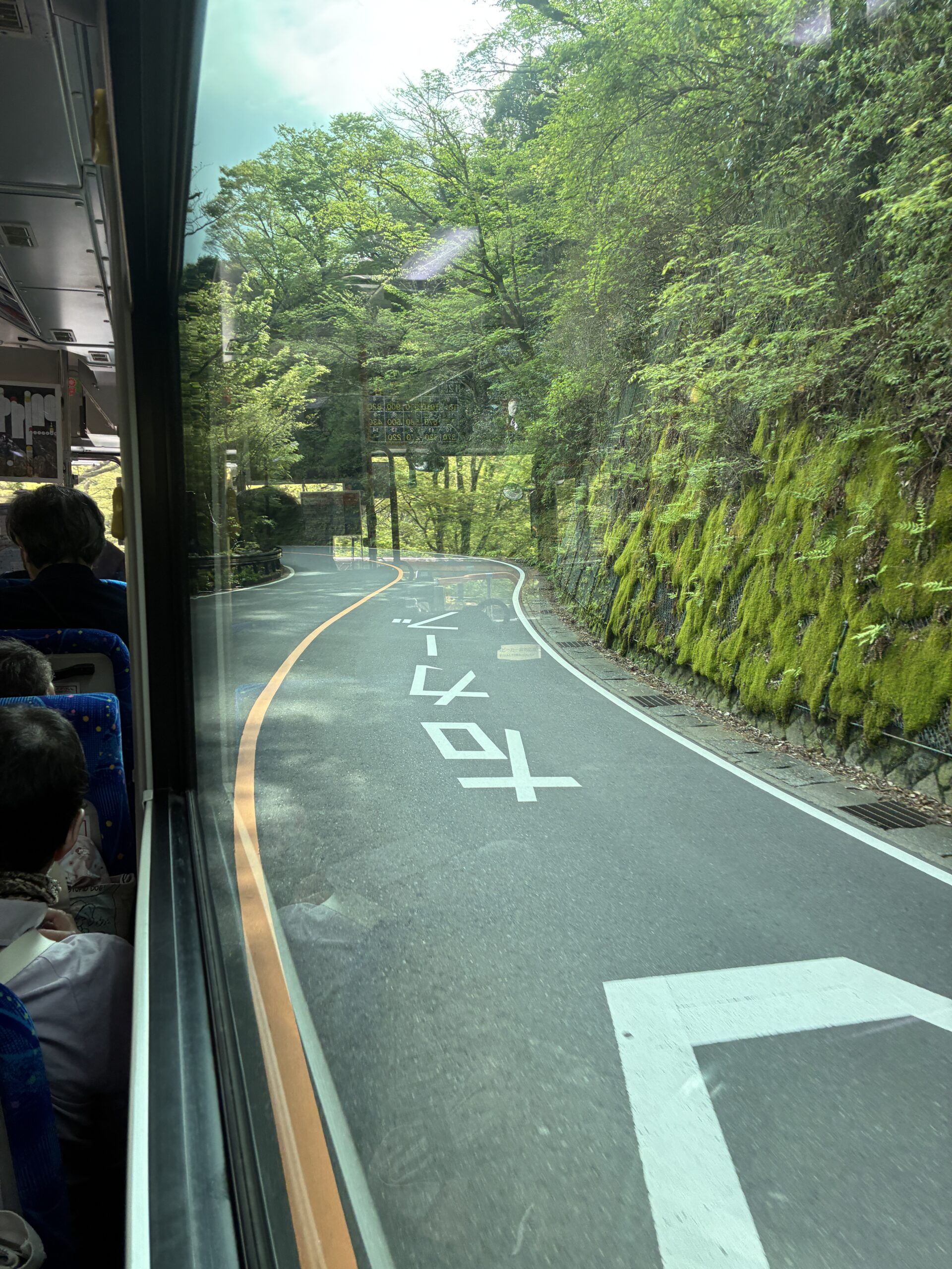 We left our lovely ryokan in Hakone around 7:30 am, and headed down the lovely wooded lane, which I see now is residential, with some high priced property flanking the road, tucked into the scenic landscape. It was pretty brisk out this morning, no surprise given the lush forest and the altitude, at a little over 2,300 feet. Nice, though. As soon as we left the Ryokan we spotted a very clear Mount Fuji off to our right. It’s everywhere, it’s classic appearance dominating the view.