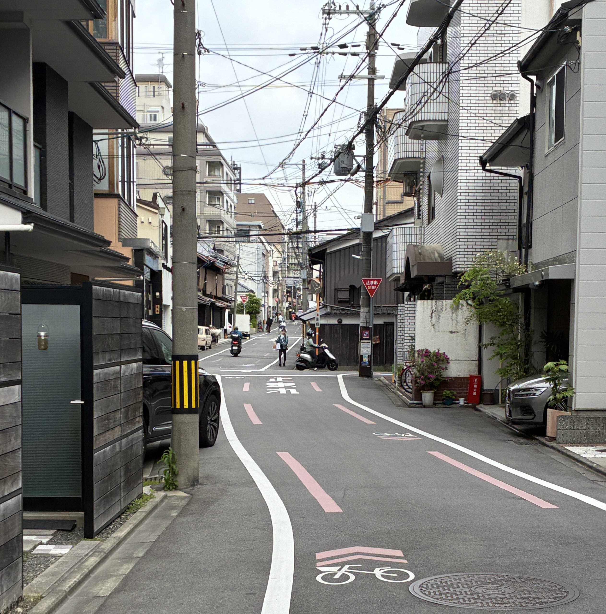Although we’d seen only what was along the way as we walked from the subway to our hotel, it seemed evident that Kyoto is a different type of city than Tokyo. The size difference, of course, is obvious. The Tokyo metropolitan area – the city proper – has around 14 million, whereas, although not small, Kyoto has around 1.4 million. Kyoto is also a much older city, and not at all the high rise, ultra modern, neon lit, fast moving city that Tokyo is known as, and has a limit on building height, for instance, as well as generally older buildings throughout. Kyoto, the former capital of Imperial Japan for over a thousand years (794–1868), has a slower pace, and is filled with over 2,000 temples and shrines throughout the city, offering a greater sense of historic beauty. Although it has old and traditional areas, such as the Asakusa district where we stayed, Tokyo is dominated by its high rise and modern buildings and lifestyle, whereas Kyoto reflects history with a tranquil and slower moving vibe. Buses and bicycles abound in Kyoto, and bicycles are everywhere, and a norm in the city, with cyclists of every age. Tokyo and Kyoto have been described as the two different sides of Japan.