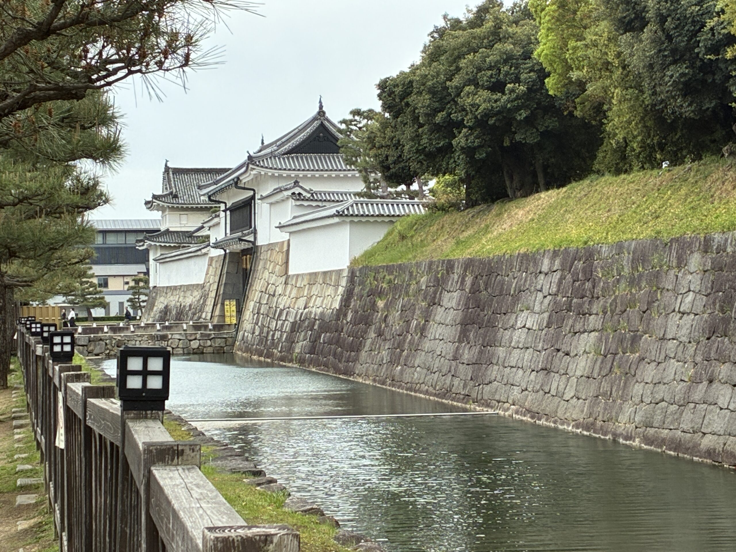 We were delighted to find that Nijō Castle, built in 1603 as the residence of the Tokugawa Shoguns, who were the military rulers of the country, was just minutes away from our hotel, and an early stop on our walk. It’s quite an imposing structure, dominating the area, and although we didn’t go in we enjoyed our walk around the building, and saw how busy it is, with tourist buses and crowds lined up at the entrance.