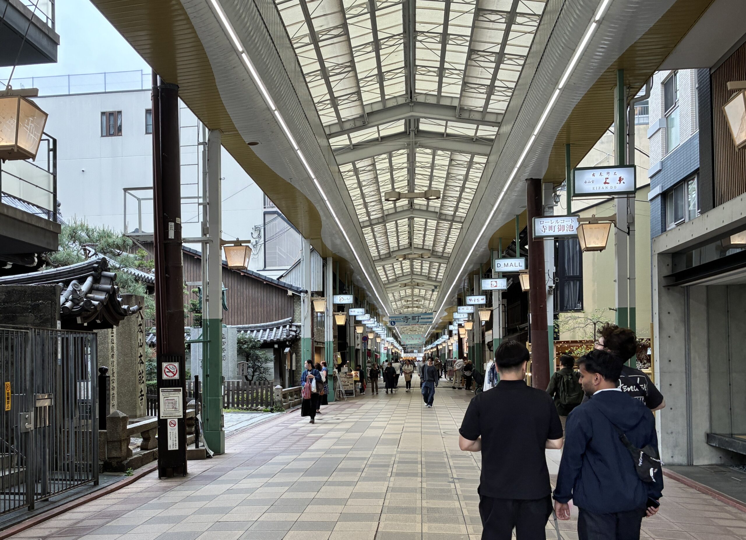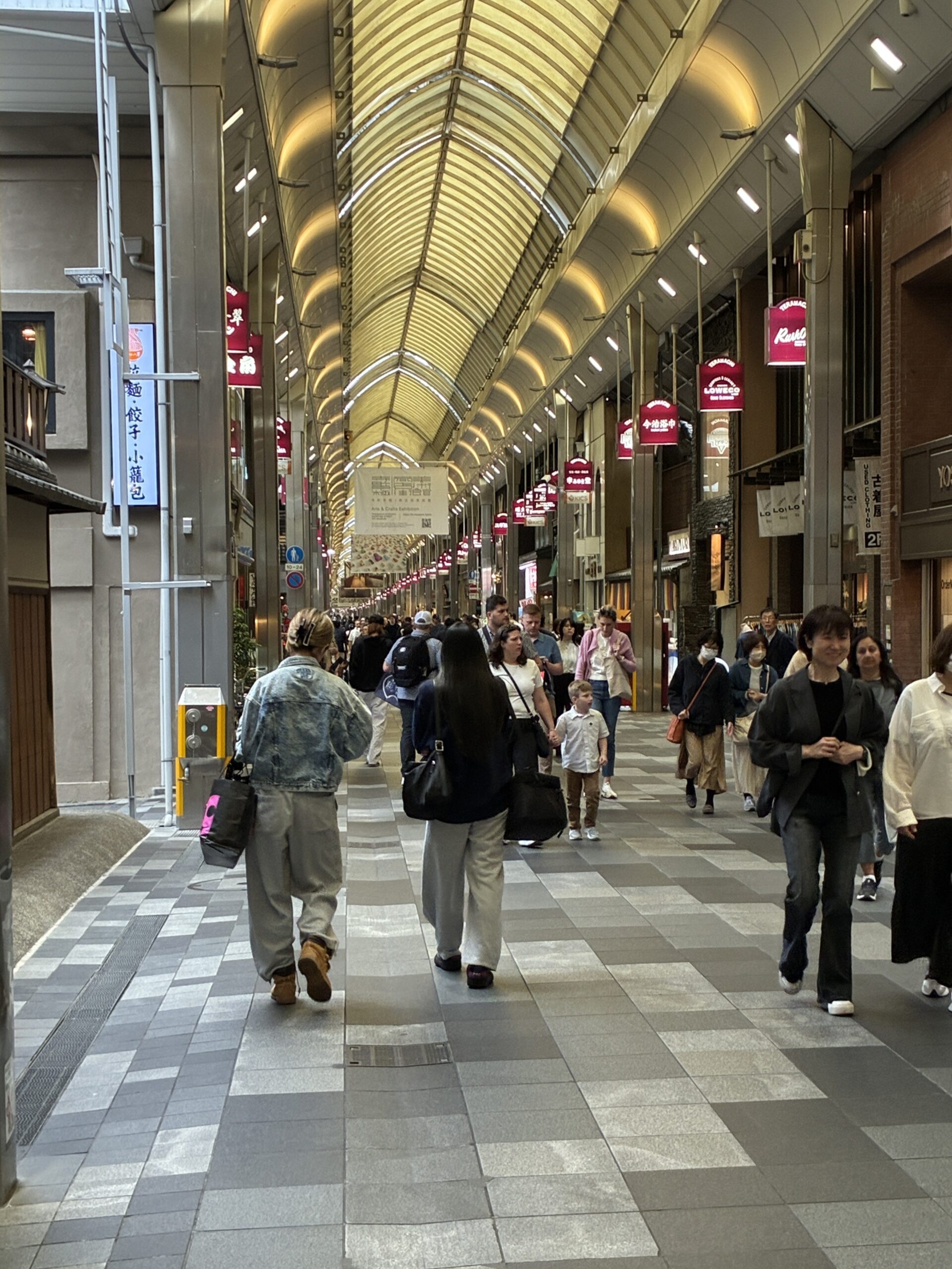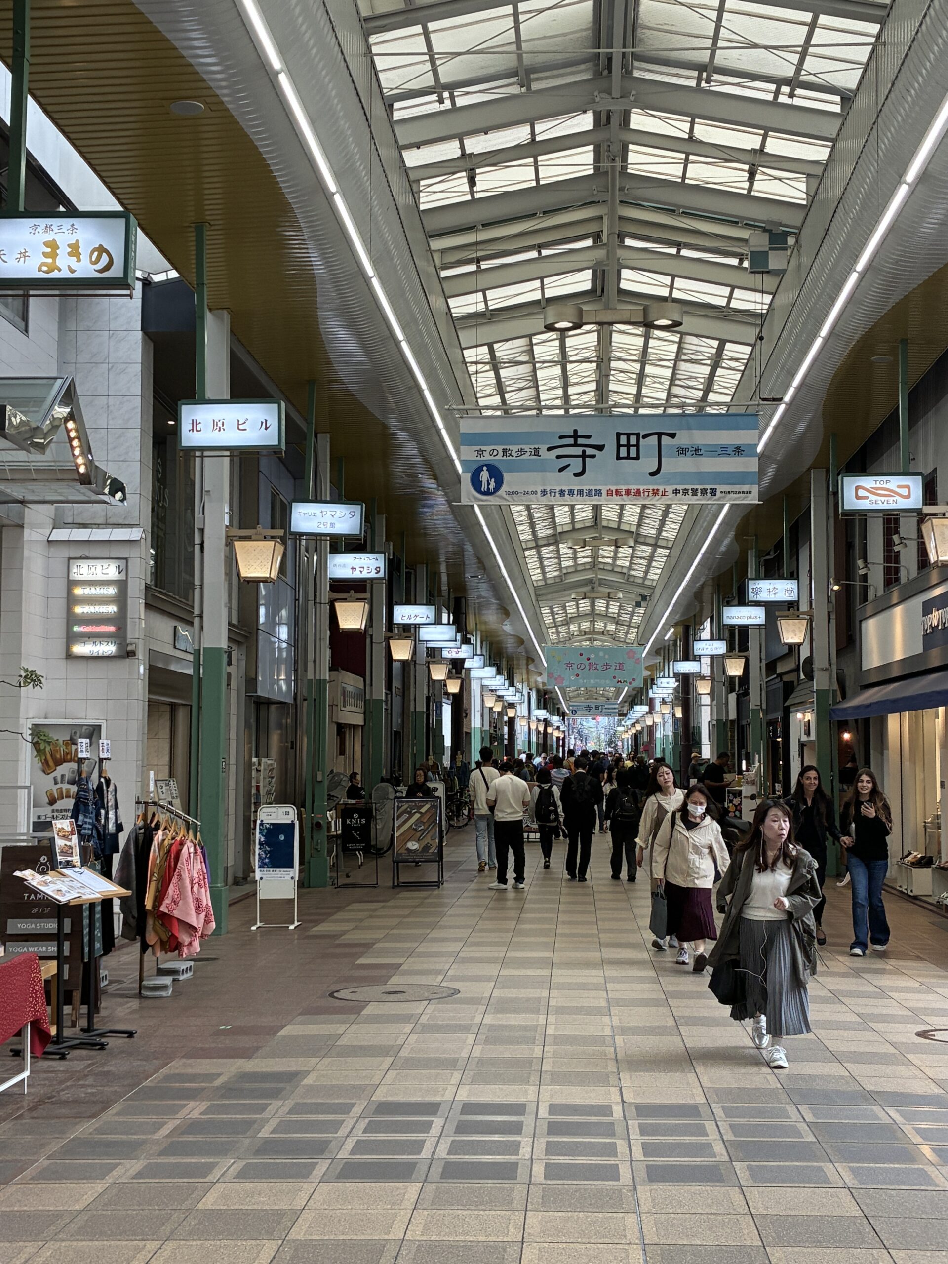 As we walked some more, we came upon the Teramachi Street covered shopping arcade, which is very similar to those we found in Asakusa in Tokyo. These are covered long pedestrian shopping areas known as shōtengai, lined with shops and restaurants of every kind , and this one seemed particularly large. These are vibrant and lively spaces, packed with shoppers and restuarant goers.