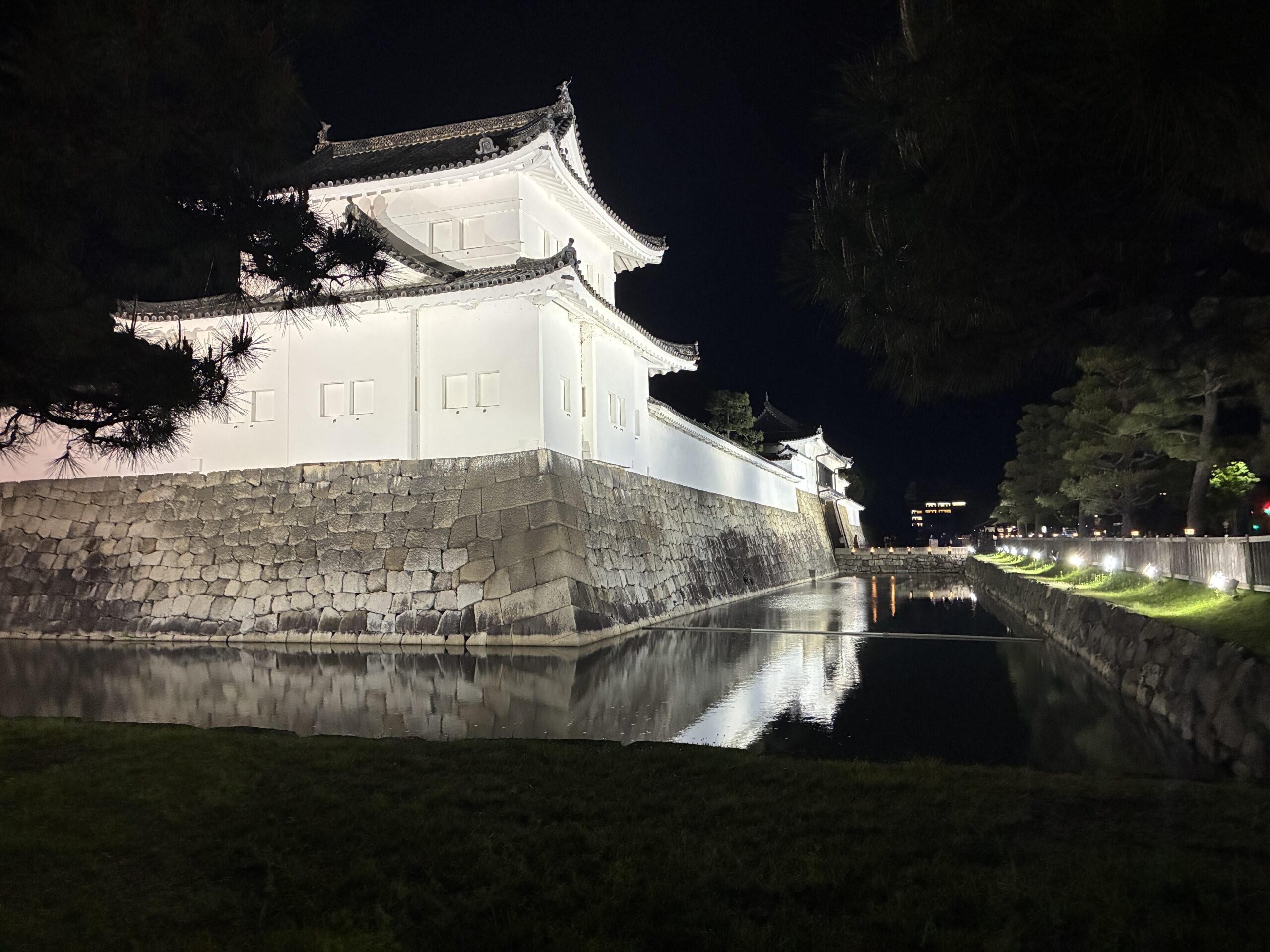 We’d been walking for quite a while and Laurence was starting to fade a little, so we headed back, stopping to get some dinner on the way. By the time we arrived back at the hotel, he was ready for sleep. I wrote my blog a little, and then headed back out for a short while to take a look at the local area by night, and walked down to and around Nijō Castle, where there were zillions of joggers of all ages running around the huge perimeter of the castle. I knew it would lovely at night, and it did.
