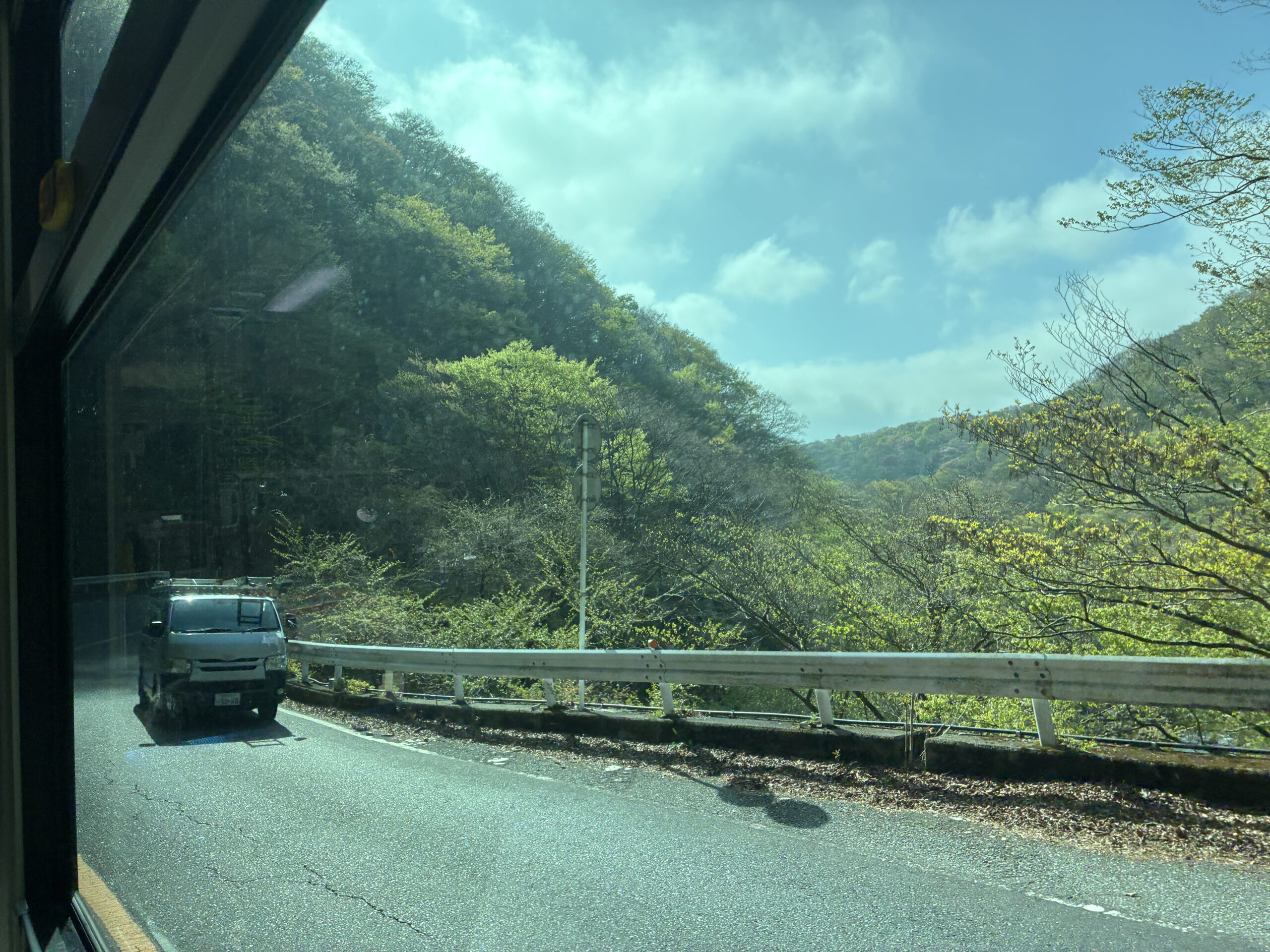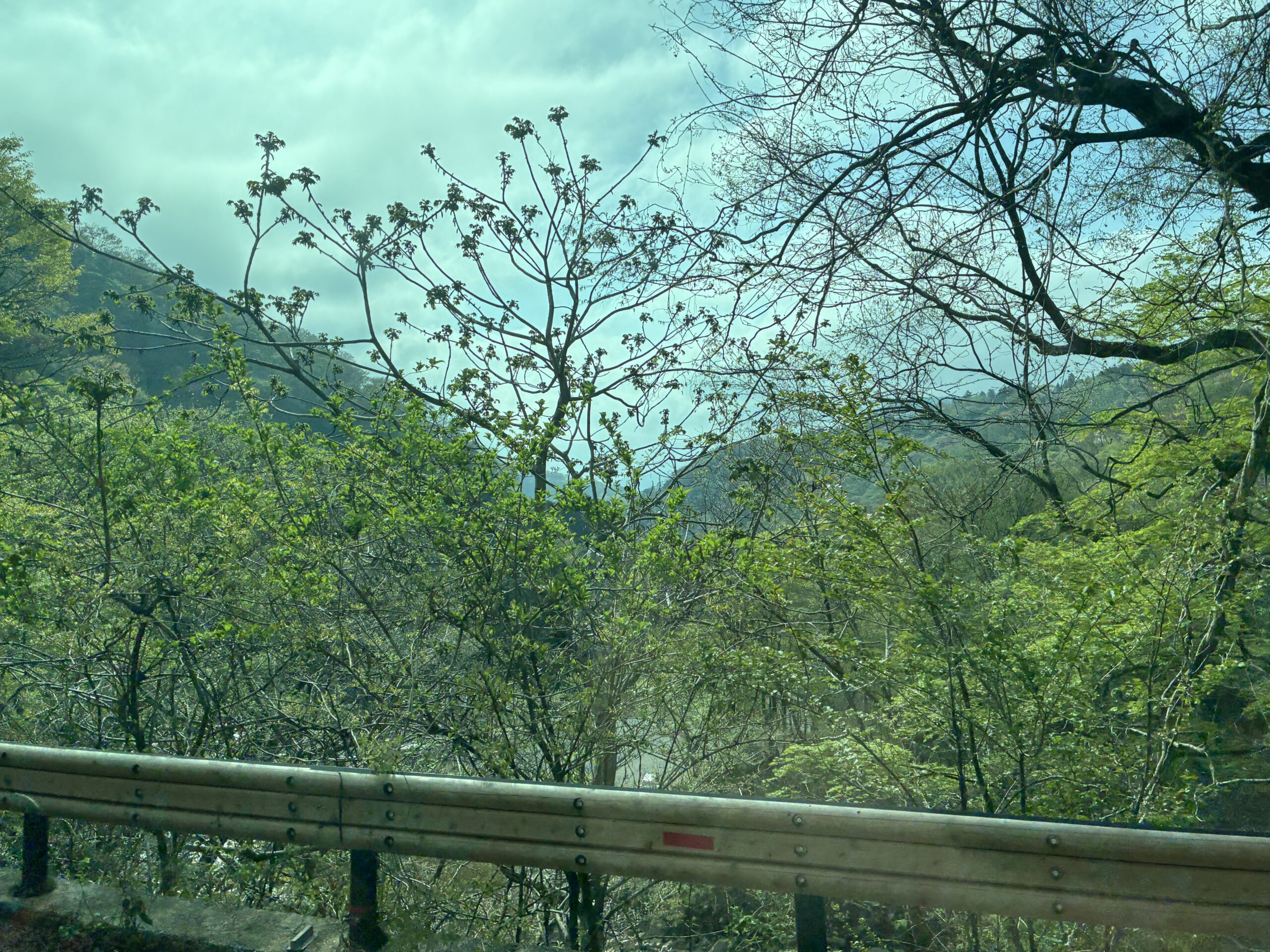 The bus ride is spectacular, traveling along continuously, curving and fairly narrow mountainside roads, passing through small village of the small village, picking up passengers at small bus stops all along the way. The road passes through deeply forested beautiful terrain on either side, sometimes with deep valleys. I took many shots from the bus, to at least give a sense of what the roads look like, although it’s difficult to get clear shots, especially with reflections in the windows. Still, they give a sense of the lovely journey. This is a fabulous ride, taking about an hour.