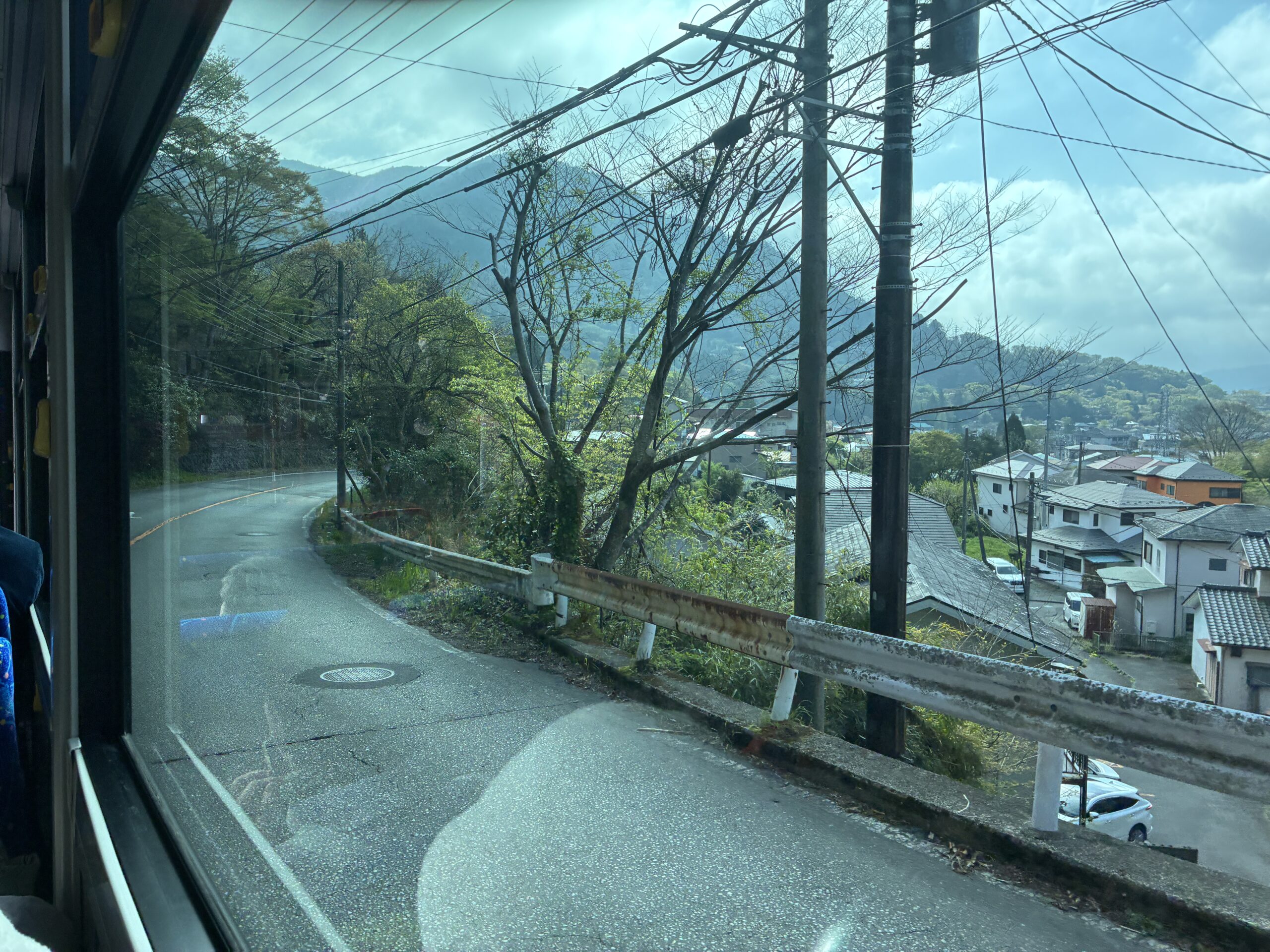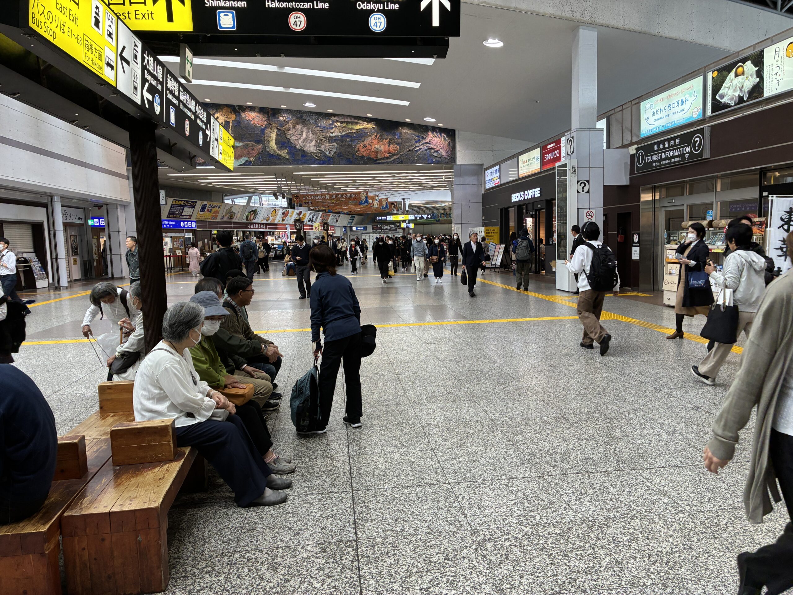 We got to the bus stop, minutes from the hotel and all downhill, so relatively easy for Laurence to walk. And 10 minutes later, along came the bus to Odawara Station.