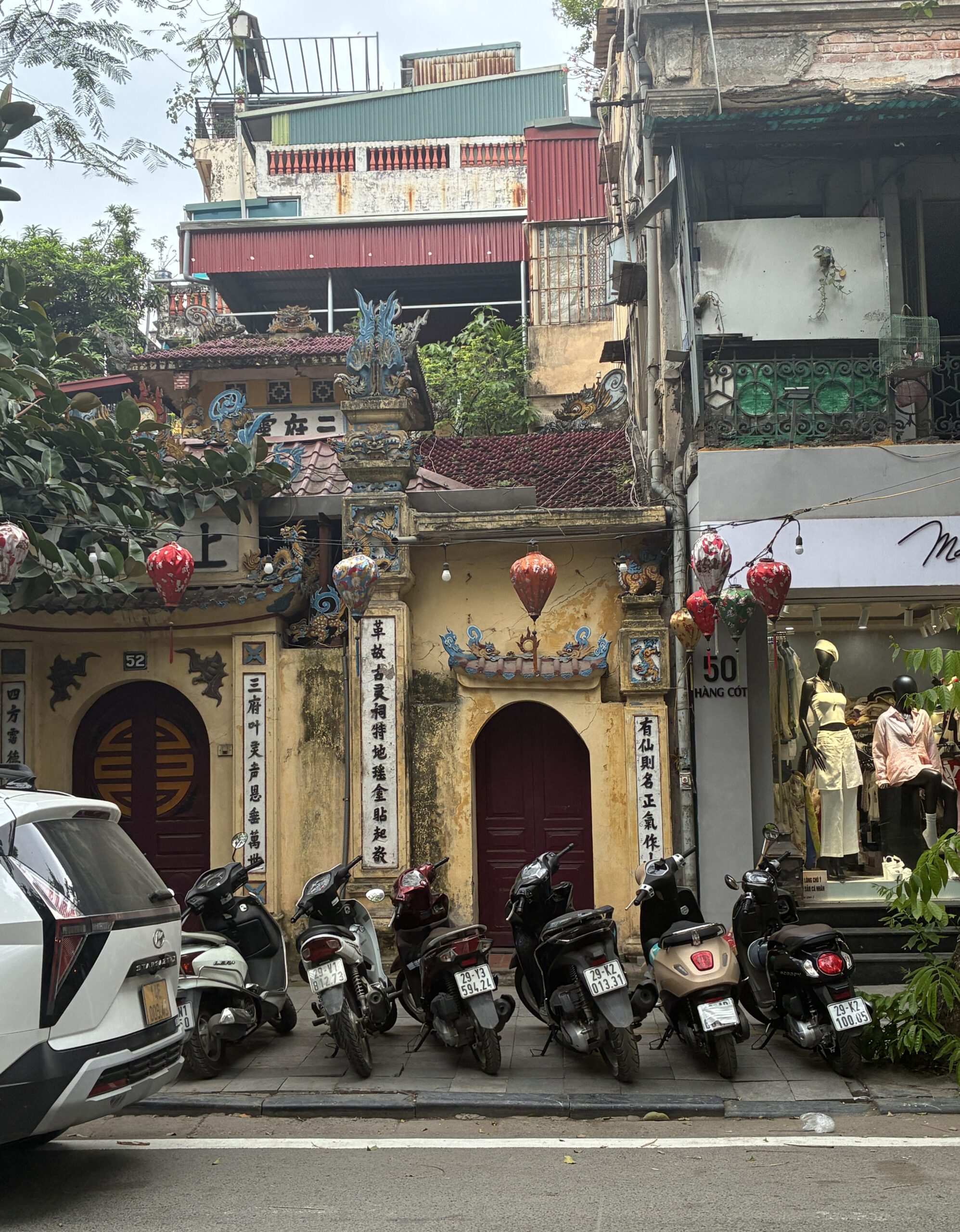 After visiting the Hanoi Hilton, we headed back to the hotel, back into the Old Quarter, passing several temples along the way. We haven’t seen too many of these, and they seem to blend more into the street environment than was the case for most temples and shrines in Japan.