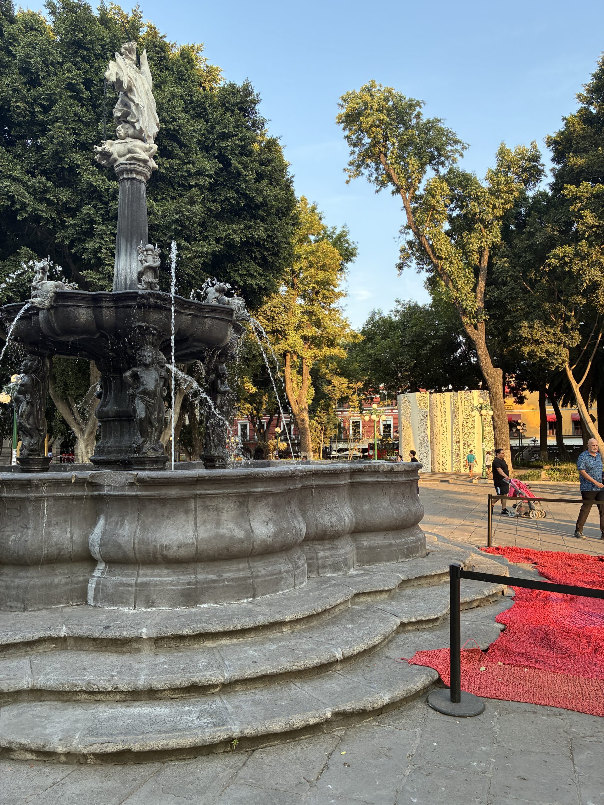 Fuente de San Miguel. That’s Saint Michael atop the fountain, the protector of Puebla