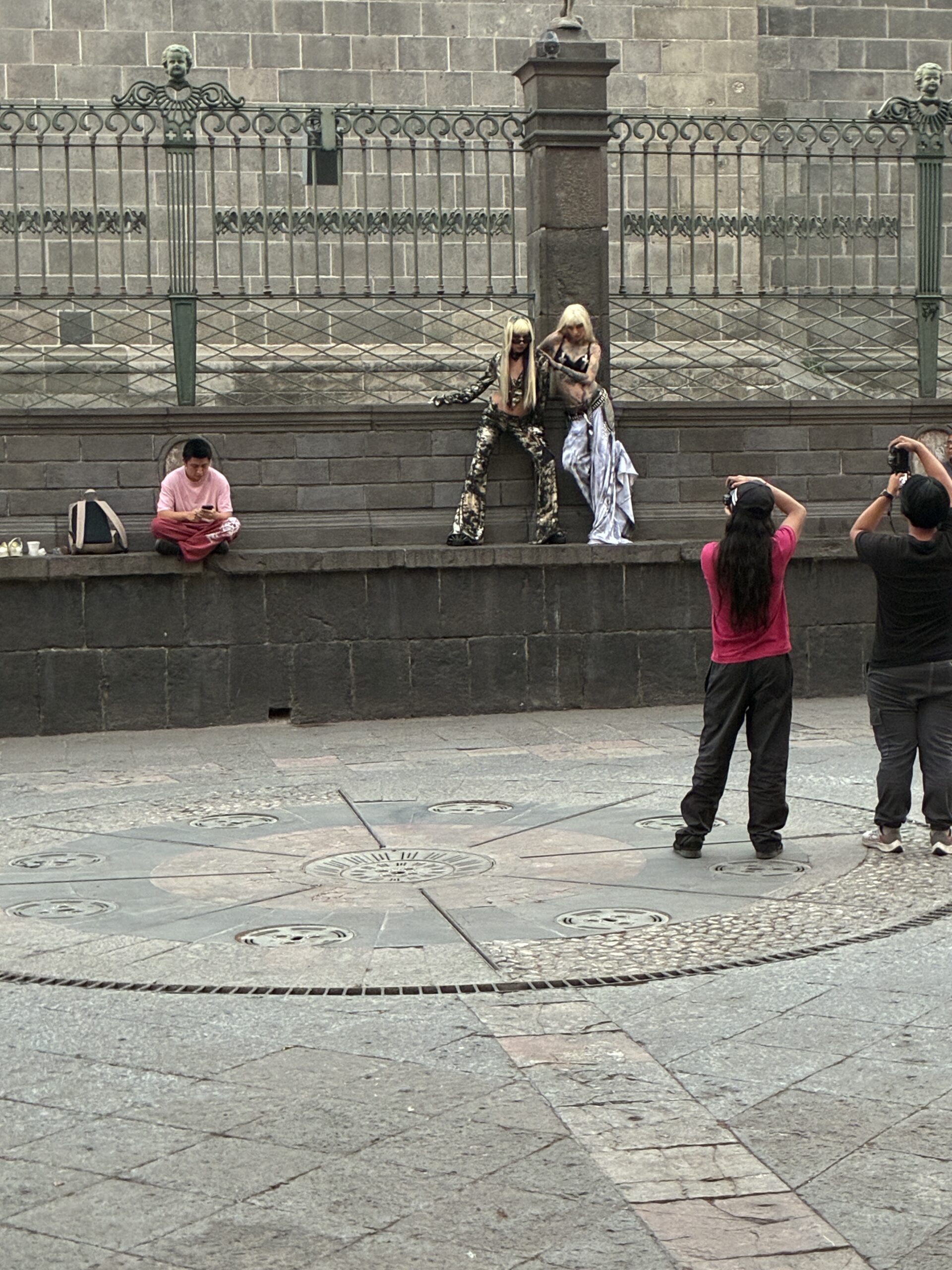 Lots of activity in the plaza, including a couple of fashionistas being photographed against the backdrop of the Cathedral.