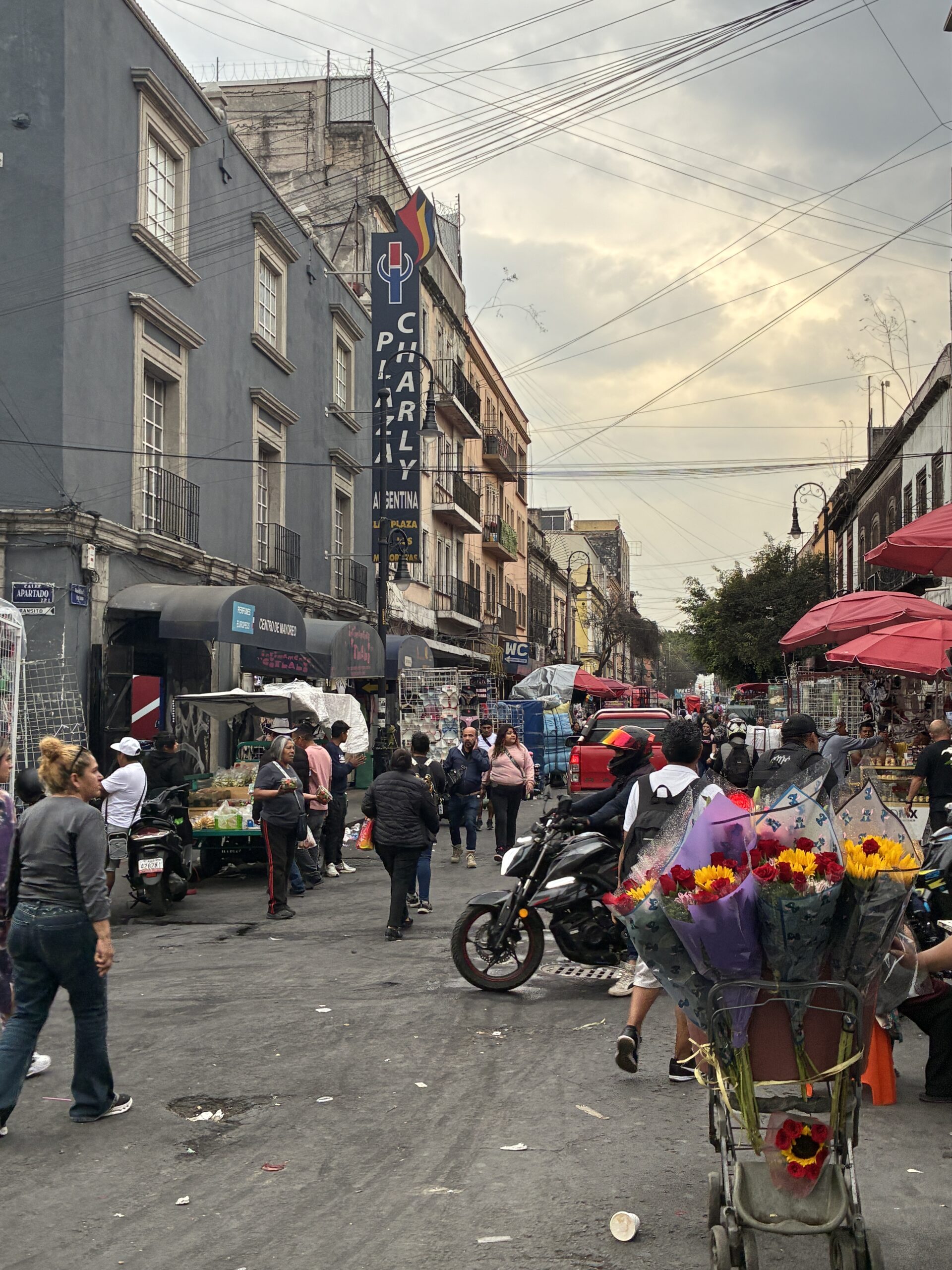I walked through the crowded streets around the Zócalo, with a very bustling market on the west side and directly in front of the Cathedral, and then walked through the streets around the central plaza, before returning later.