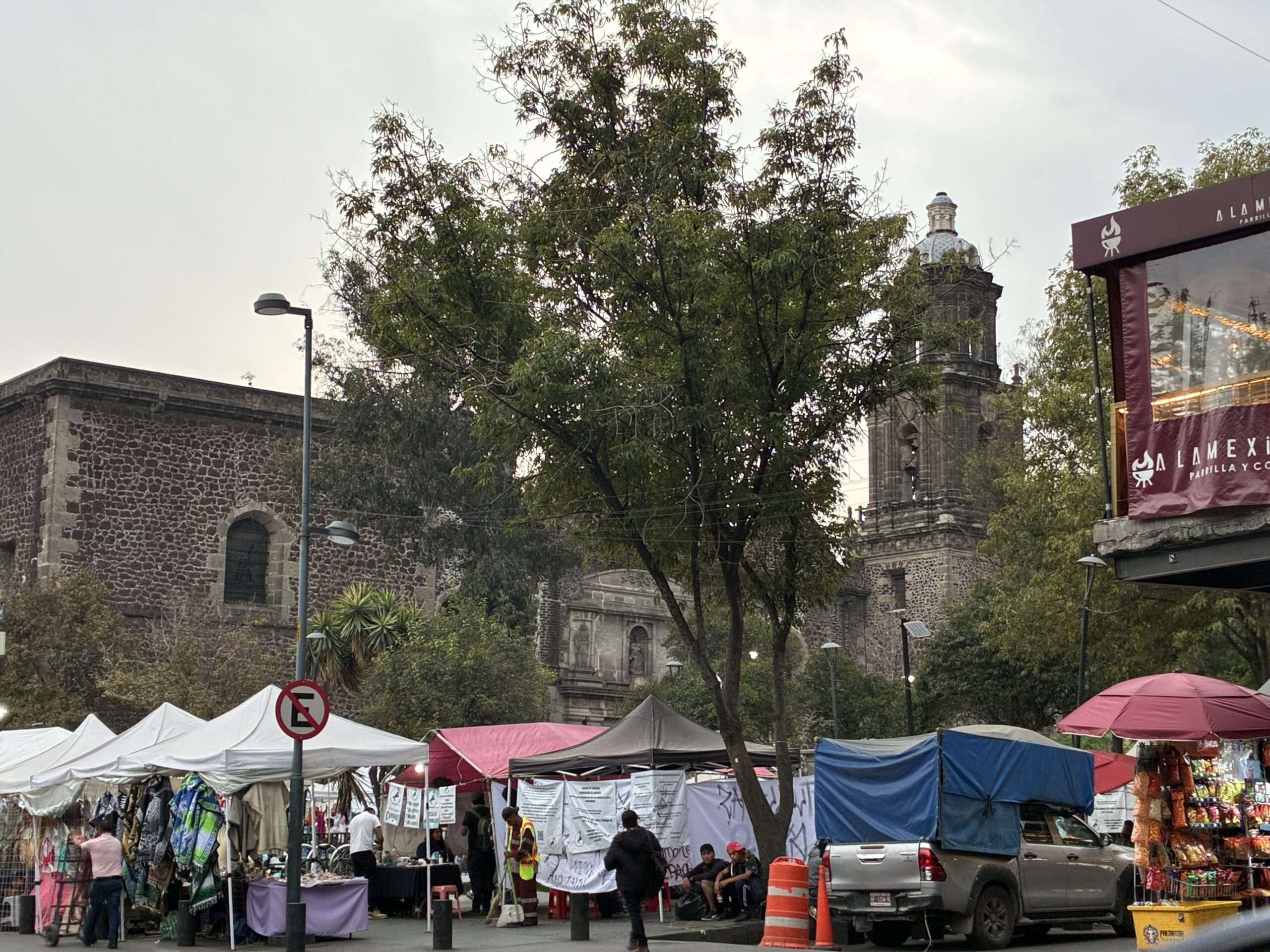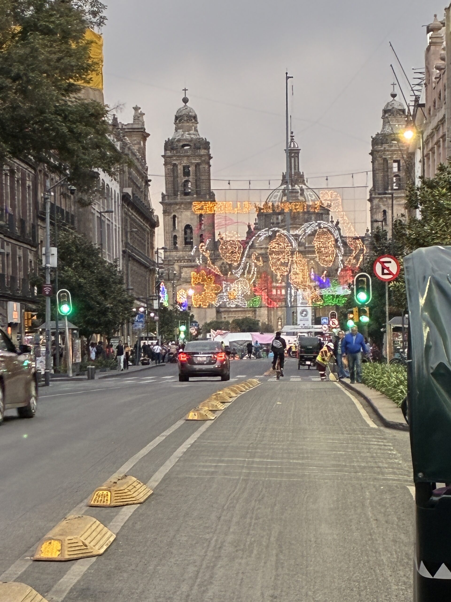The buildings are beautiful and from an age gone by (aside from the fact that some are sinking), and the buildings on the south and west sides of the plaza are hung with political messages, and remain from the Women’s March last week. These marches can result in violence and vandalism, and like Oaxaca, where I was last week when the Women’s March took place, there are high metal barricades protecting property and landmarks all over the city, not yet taken down.