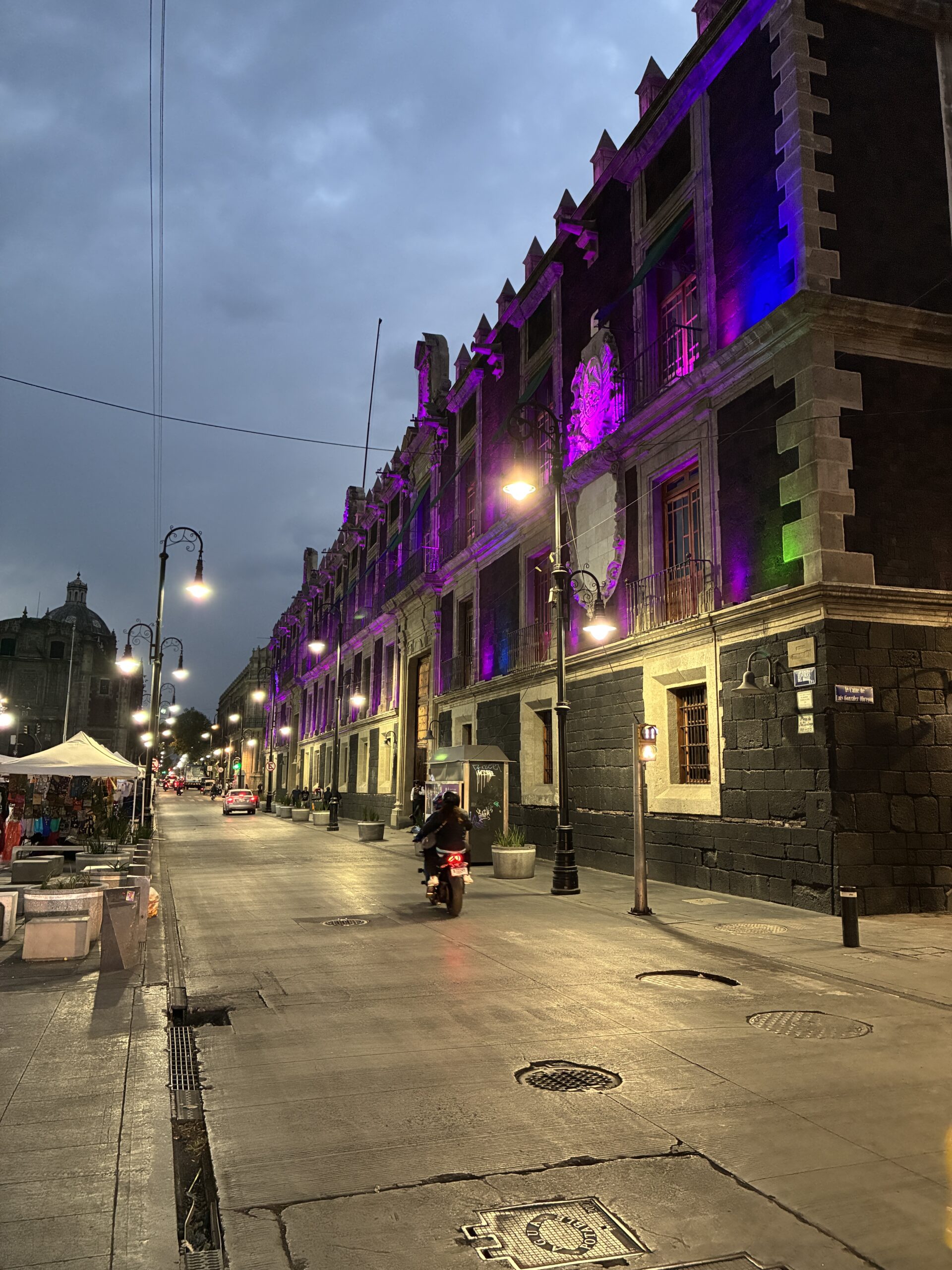Dusk was starting to settle, and street and building lights coming on, as I continued to work my way through streets around the Zócalo, and returning to it before heading back to my hotel. Those building lights make the city look extra lovely.