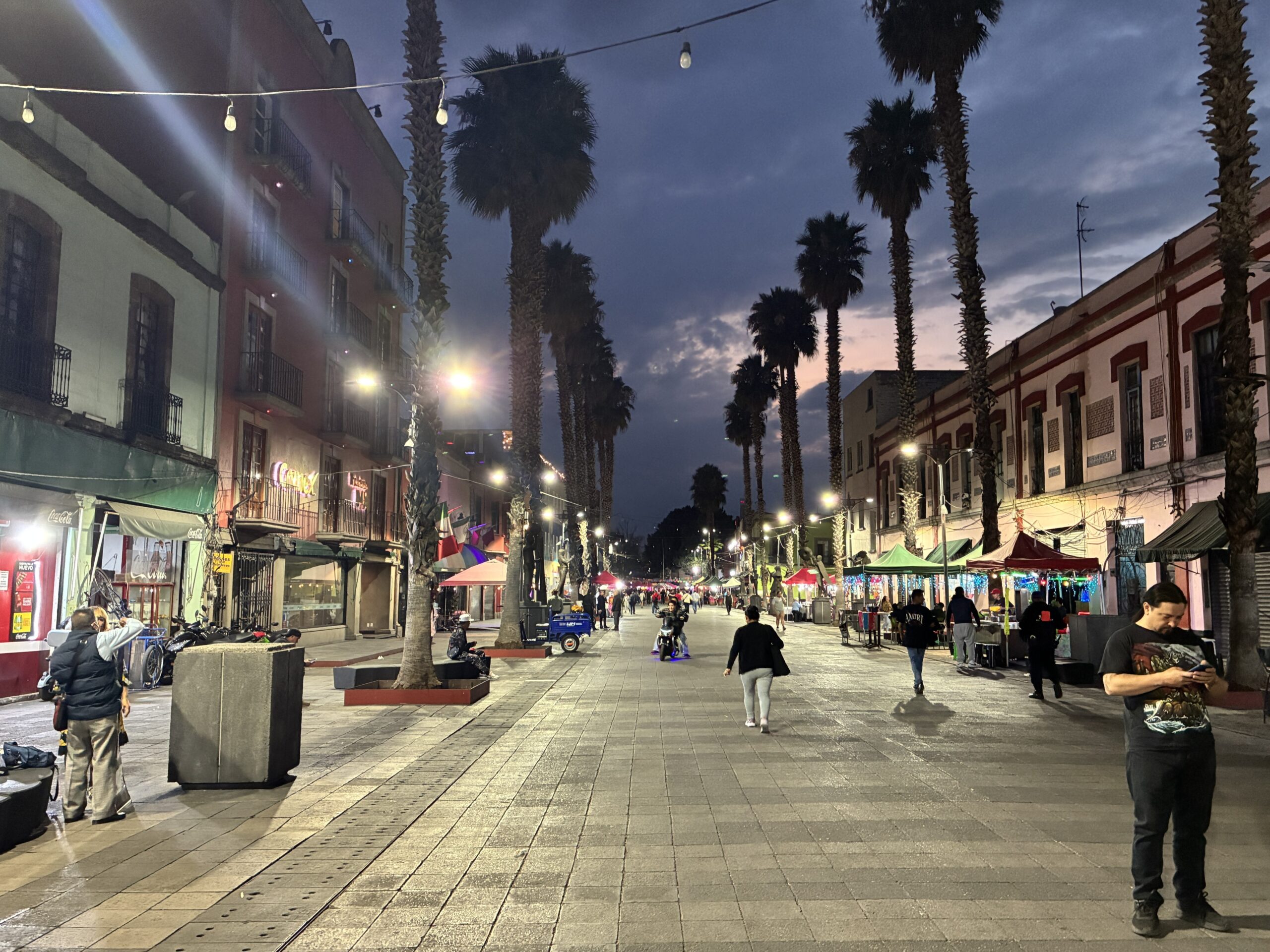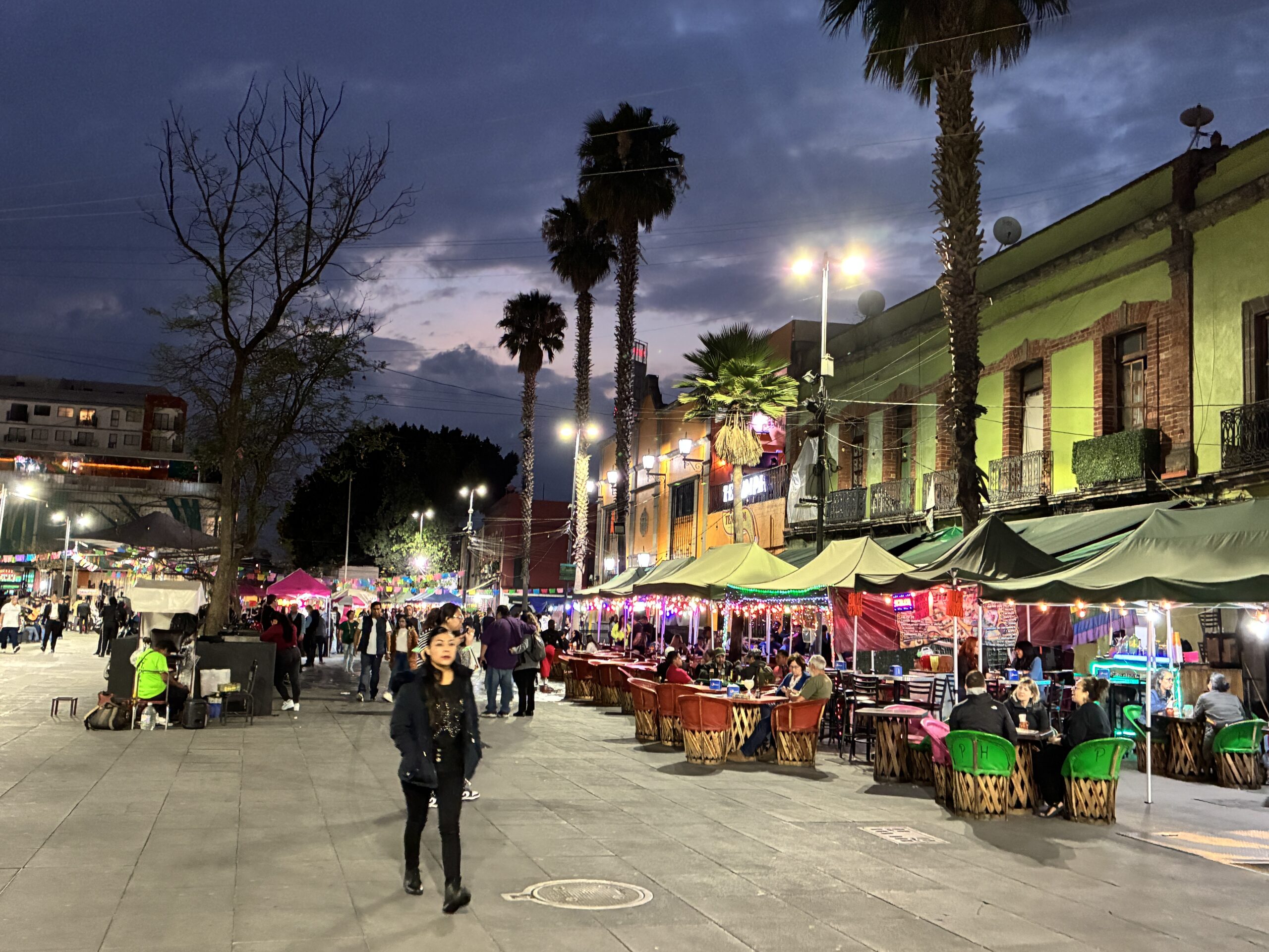 And then time to head back to Lagunilla, which I now knew was about a mile or less, and maybe a 20-25 minute, depending on which way I went, and on the way back passed through Plaza Garibaldi again. The look of the city as the dusk settles and the lights come on.