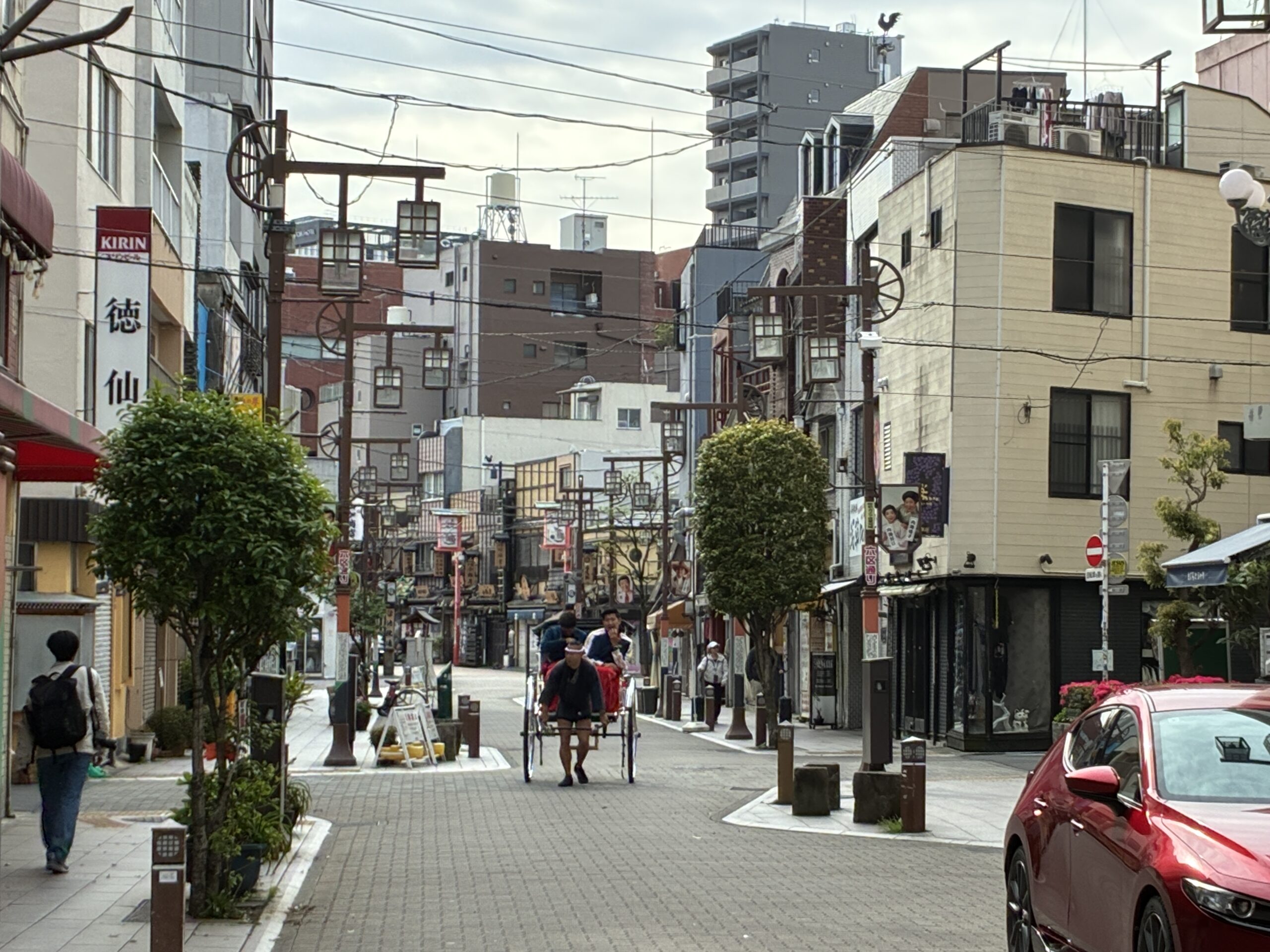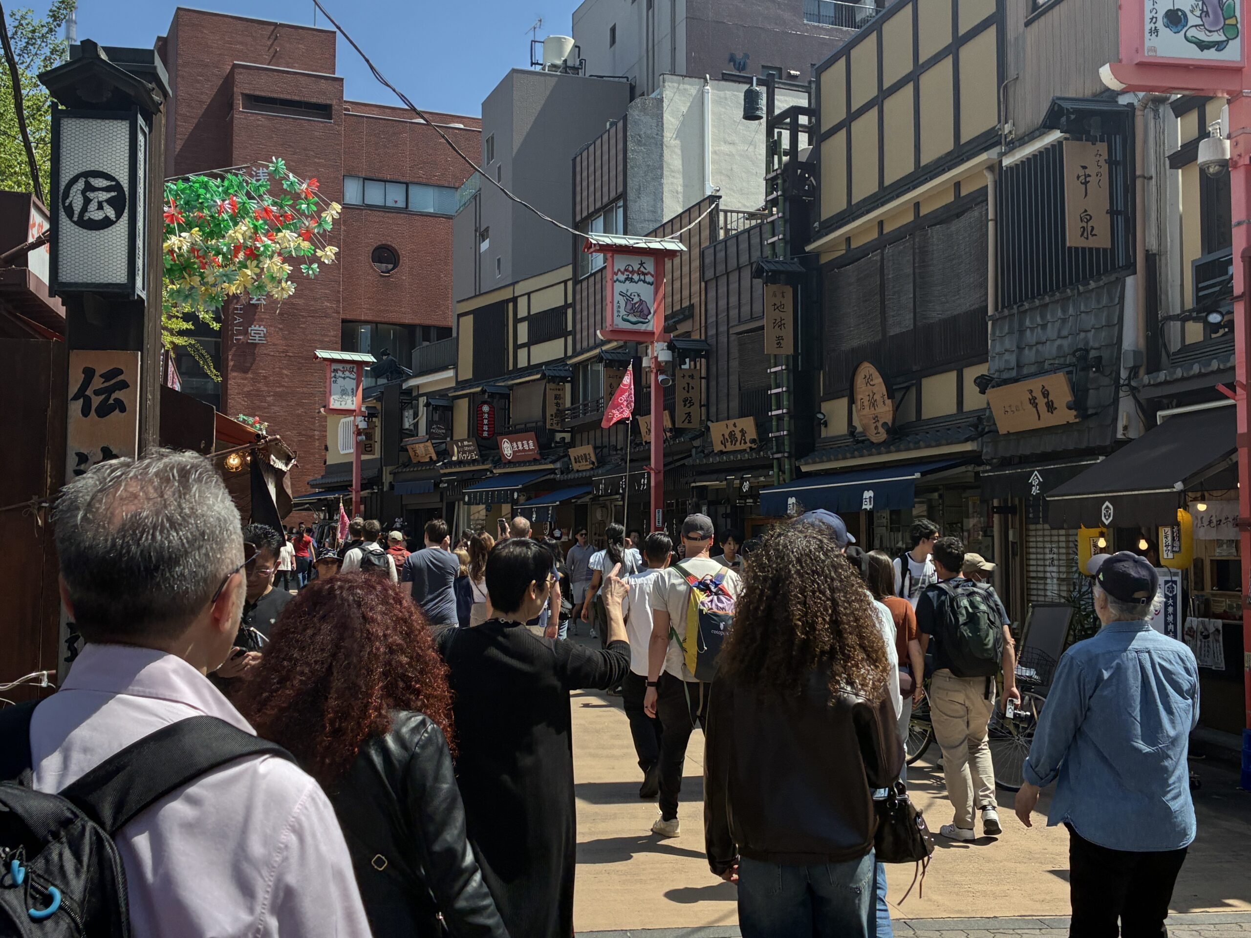 The streets are very clean in the area, with lots of interesting looking side streets and pedestrian covered shopping malls throughout, and we enjoyed walking. It was cool but nice temperature-wise, and starting to warm up by 10 am, and got into the 70s as the day proceeded. Definitely shorts weather, despite a cool start to the day. Before we left Taito Ryokan, our hotel, we booked a guided street walk for 10:30, which was to meet in front of the Asakusa Cultural Center, maybe a 7-minute walk from the hotel, and that was the very area we’d been walking for several hours already by the time we met up.