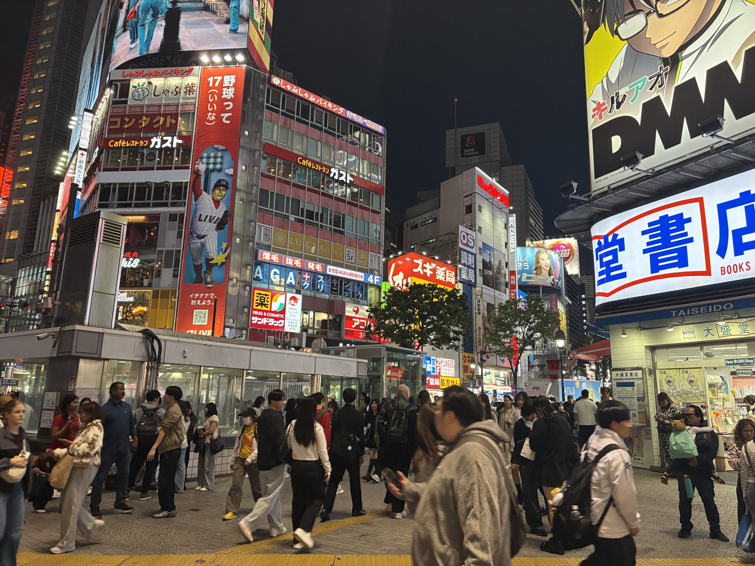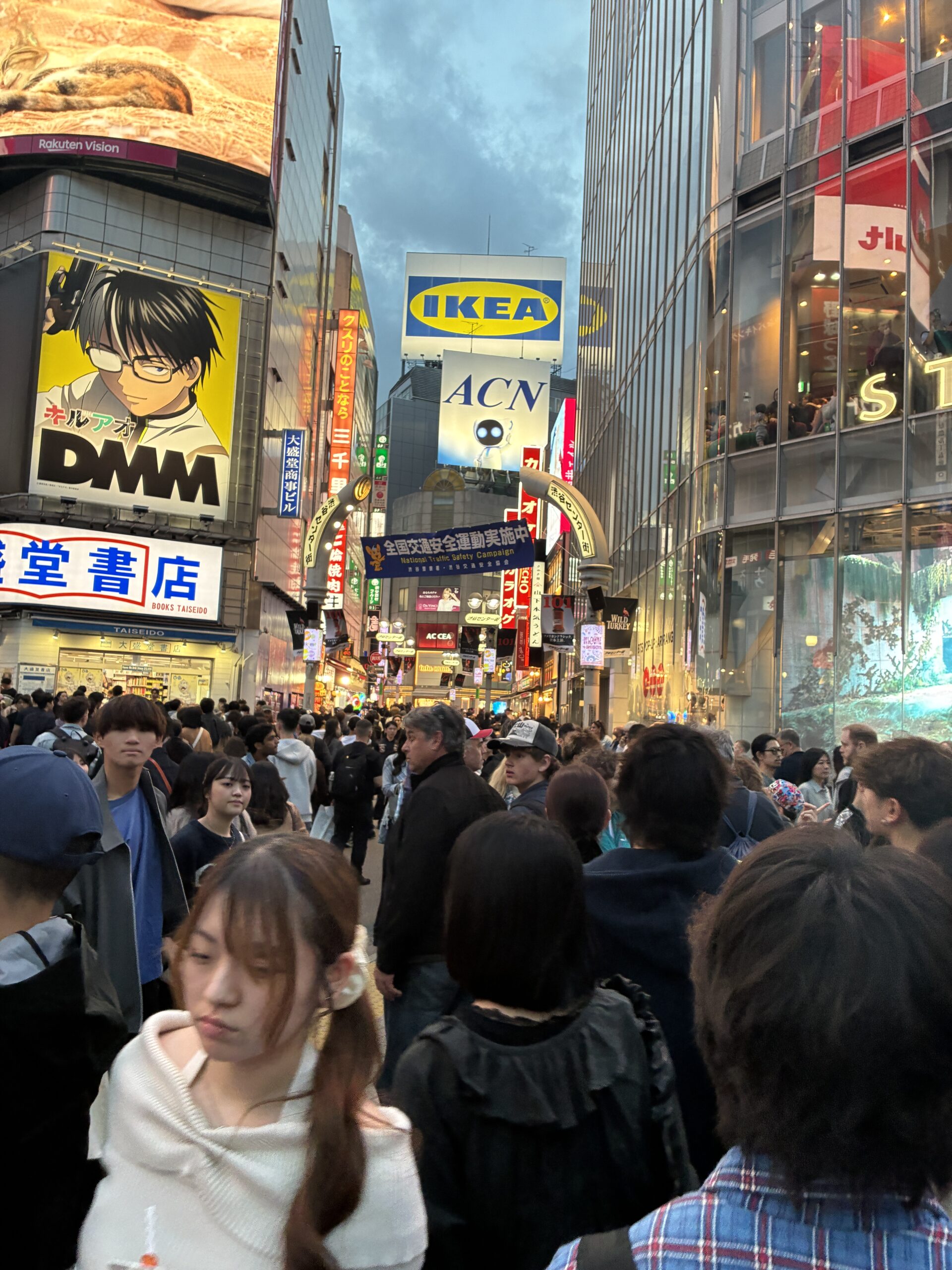 Then we took the subway from Asakusa station to Shibuya Crossing. his part of town is completely different from the Asakusa district, and very uptown and slick. Shibuya Crossing is a “scramble” crossing, surrounded by giant video screens and neon ads on the adjacent buildings, where traffic stops in all directions and pedestrians cross from every side at once, including diagonally, and hundreds of people crowd across the large intersections in multiple directions, and is sometimes known as called the busiest pedestrian crossing in the world. it’s an icon of Tokyo’s fast-paced and high-energy vibe, in this part of the city, at least.